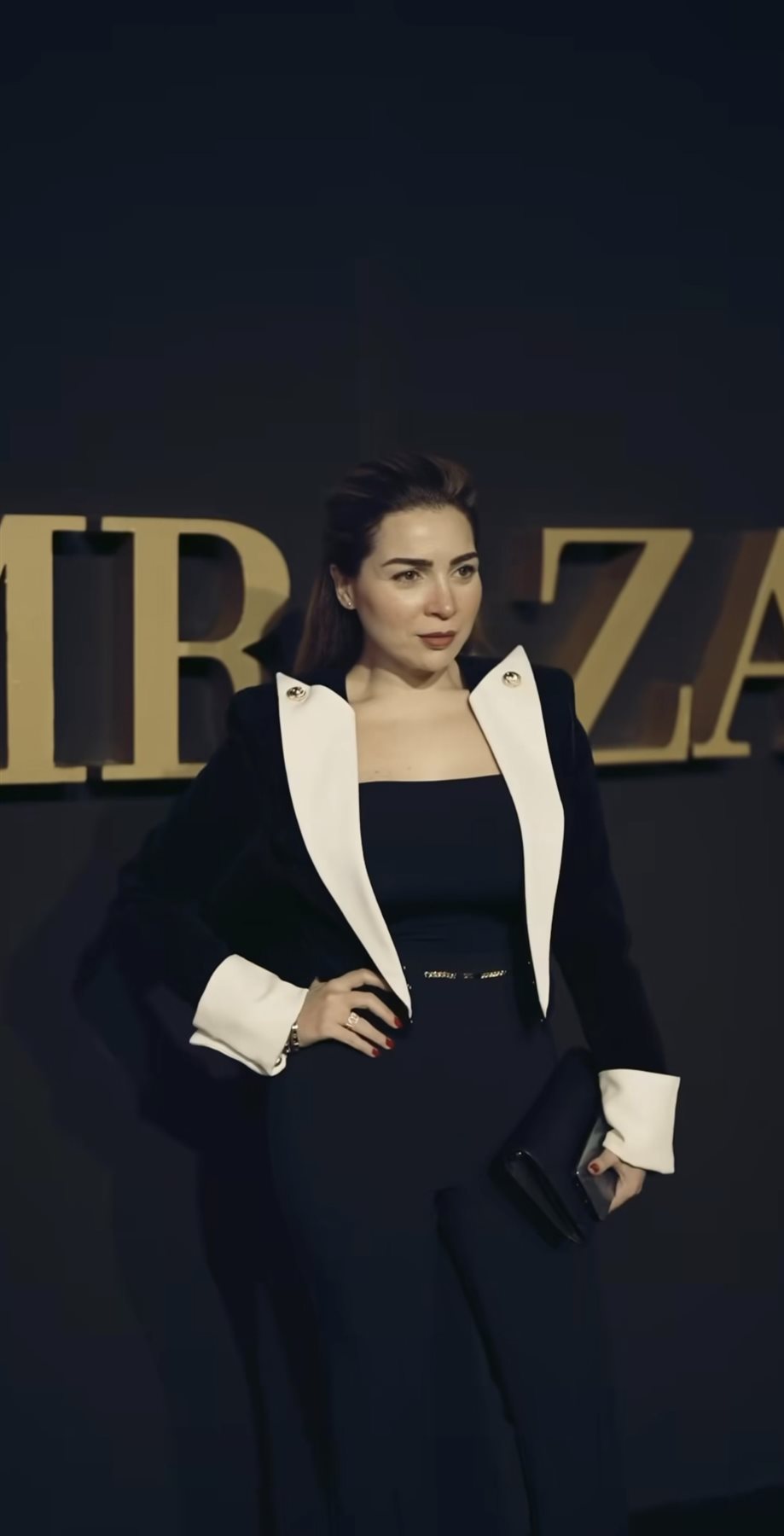 وتألقت مي عز الدين ببنطال أسود بصيحة الشارلستون، ونسقت عليه توب مجسم نفس اللون وبليزر قصير باللونين الأبيض والأسود، وحددت خصرها بحزام ذهبي رفيه؛ ليبرز رشاقتها وقوامها الممشوق.