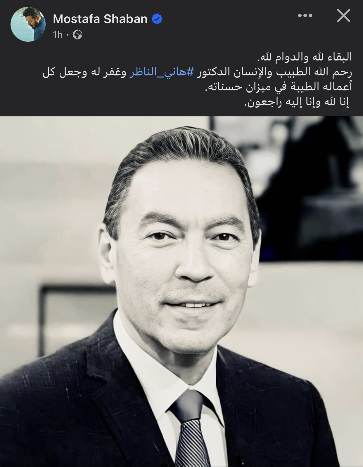 مصطفى شعبان ينعى الدكتور هاني الناظر