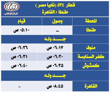 ويترتب على ما سبق تعديل جدول مسير قطار 534 طبقاً للجدول المرفق .