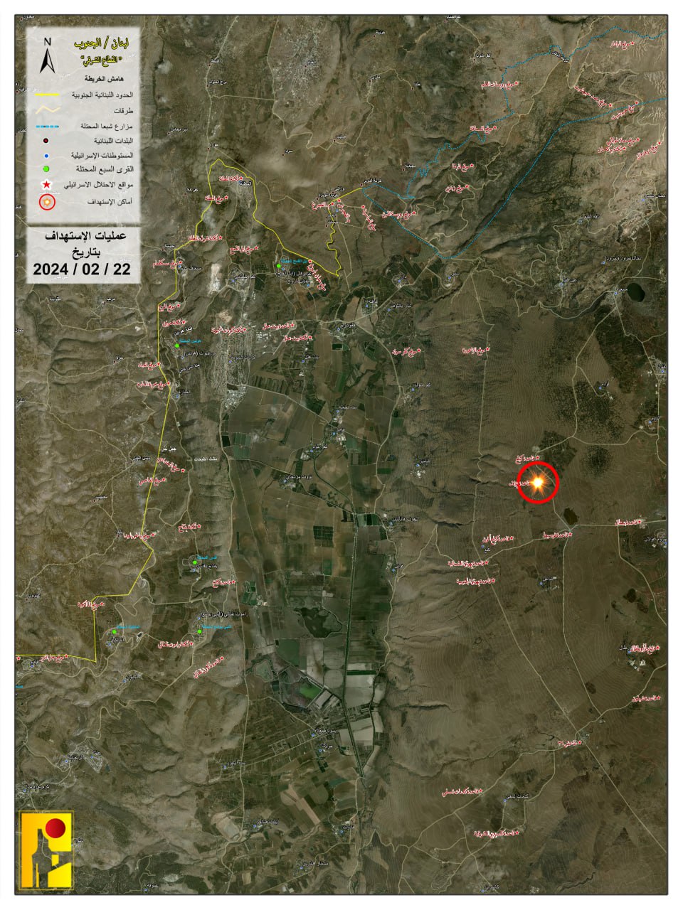 وقال حزب الله في بيان له: دعمًا لشعبنا الفلسطيني الصامد في قطاع غزة وإسنادًا لمقاومته الباسلة والشريفة، ورداً على الاعتداءات على القرى والمنازل المدنية وآخرها في كفررمان استهدف مجاهدو المقاومة الإسلامية عند الساعة (7:00) من مساء يوم الخميس 22-02-2024 ثكنة يوآف بصواريخ الكاتيوشا.