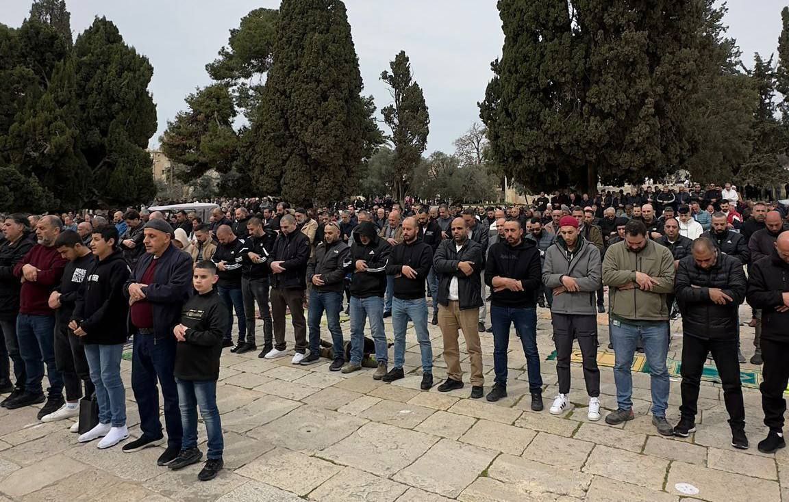 أدى عشرات الفلسطينيون صلاة الجمعة في المسجد الأقصى المبارك، رغم قمع الاحتلال واجراءاته بمنع وصول المصلين للمسجد.