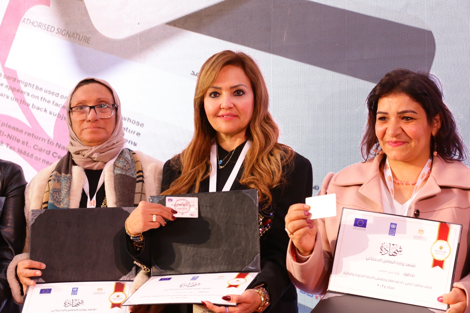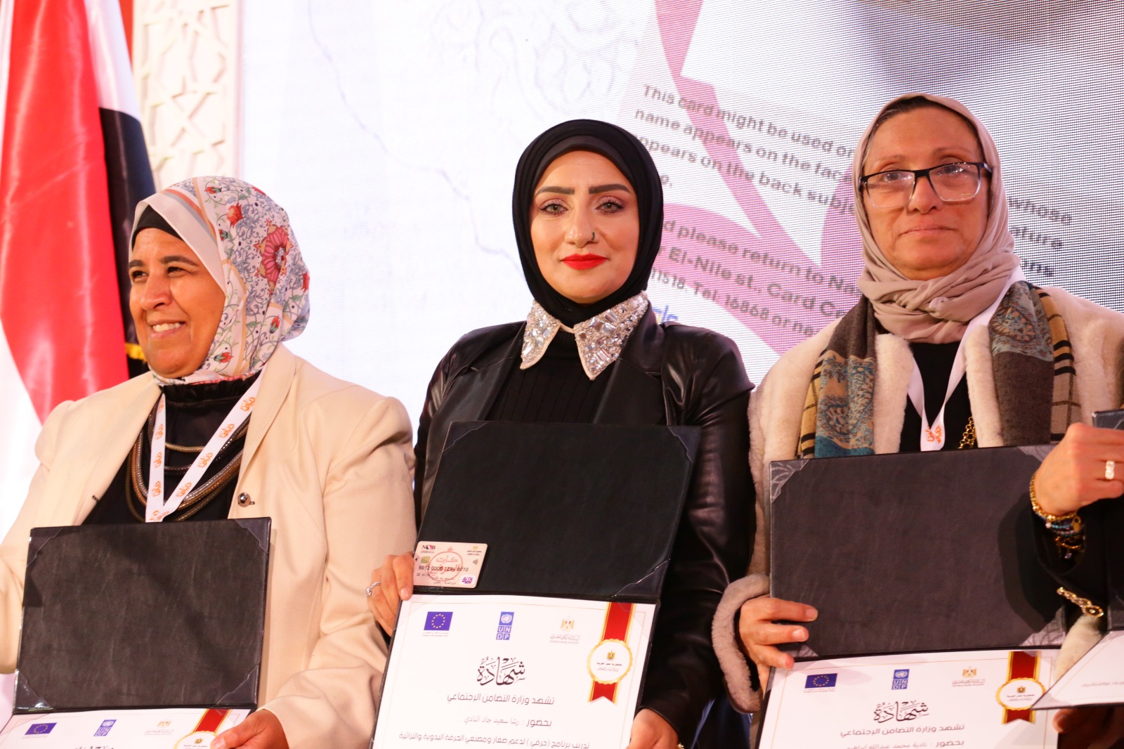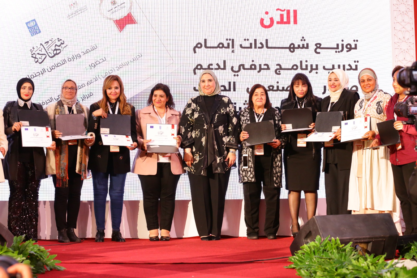 وسلمت القباج عددا من الشهادات لمتدربي برنامج "حرفي" لدعم صغار ومصنعي الحرف اليدوية والتراثية والذي تنفذه وزارة التضامن الاجتماعي بالتعاون مع البنك المركزي المصري.