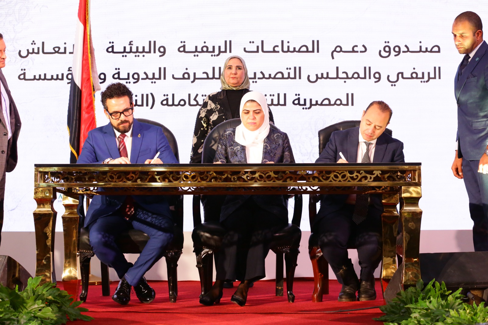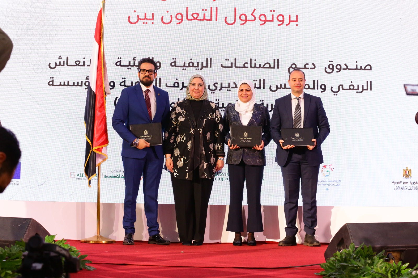 كما شهدت نيفين القباج توقيع بروتوكول التعاون بين صندوق دعم الصناعات الريفية والبيئية والإنعاش الريفي والمجلس التصديري للحرف اليدوية ومؤسسة النداء، ويهدف البروتوكول إلى إنشاء مصنع سجاد يدوي يضم 800 عامل وأكثر من 200 نول، مع اعتبار دعم فرص التمكين الاقتصادي للمستفيدين من "تكافل وكرامة" القادرين على العمل لتخريجهم من الدعم إلى الإنتاج.