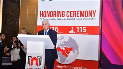 جاء ذلك خلال كلمته بحفل تكريم وتسليم شهادات النسخة الأولى من التصنيف العربى للجامعات وانطلاق الدورة ١٤ للملتقى الدولى للتعليم العالى والتدريب (ايديوجيت) بحضور الدكتور أيمن عاشور وزير التعليم العالى والبحث العلمى والسفيرة هيفاء أبو غزالة الأمين العام المساعد لجامعة الدول العربية، والدكتور عمرو عزت سلامة أمين عام اتحاد الجامعات العربية، ولفيف من رؤساء الجامعات المصرية والعربية.