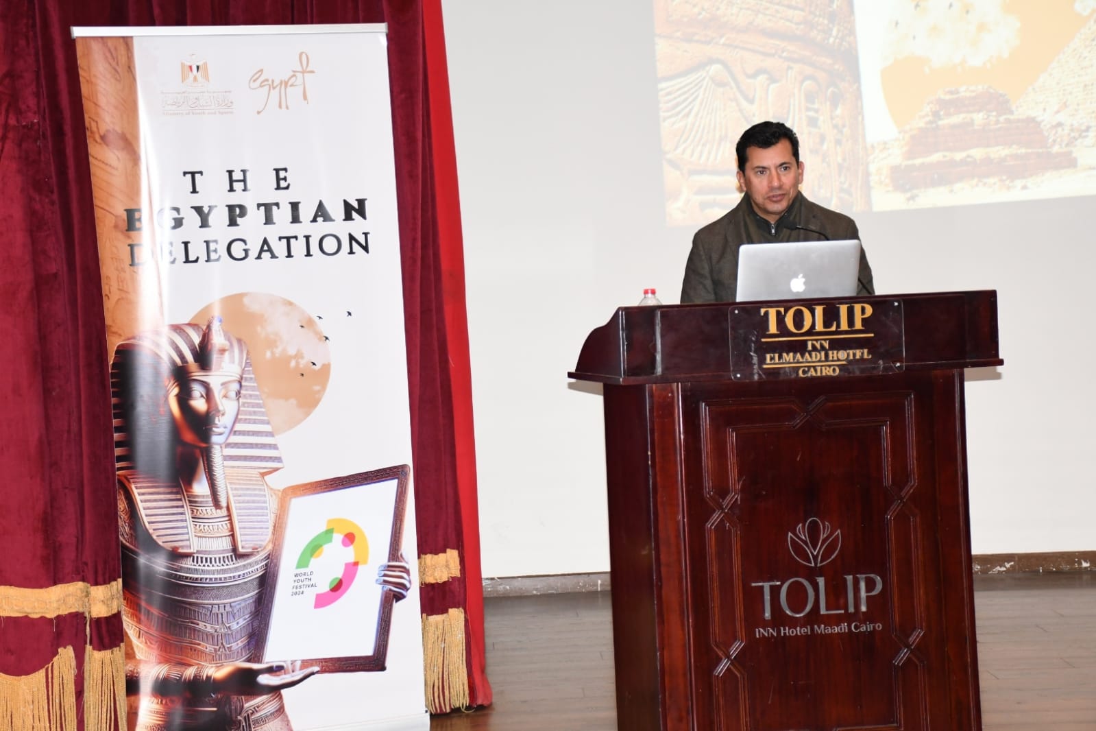 ونوه الدكتور أشرف صبحي، إلى دعم الوزارة لكل حراك شبابي على كل المستويات منوها بالمبادرات التي تتم ضمن استراتيجية وطنية للنهوض بالشباب المصري في ظل اهتمام وتوجيهات الرئيس عبدالفتاح السيسي في هذا الإطار، متسلحين بالعلم والفكر لمجابهة كافة التحديات العالمية، موضحاً أن المهرجان في نسخته ۲۰۲٤ يهدف إلى بناء جسور التواصل بين الشباب، وبناء علاقات الثقة بين الشباب من أنحاء العالم، وإيجاد رؤية موحدة لدي شباب العالم حول مستقبل البشرية والتمسك بلغة السلام وإعلاء مبادئ جميع الصداقة والتضامن بين الشعوب.