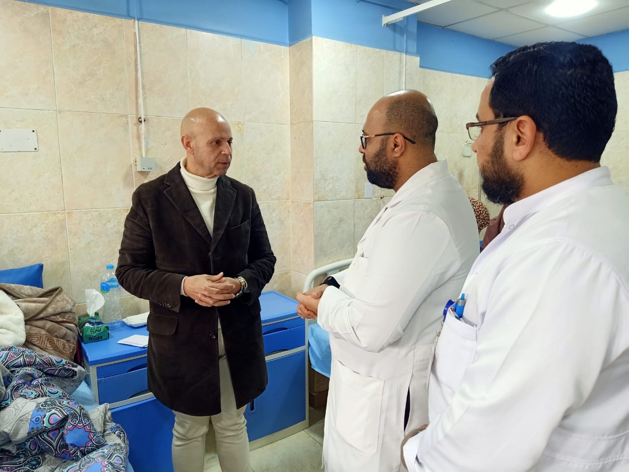 وتجول وكيل وزارة الصحة، بداخل الأقسام الطبية المختلفة بمستشفى السعديين، للتأكد من تواجد القوى البشرية في أماكن تقديم الخدمة الطبية، ومن توافر الأدوية والمستلزمات الطبية، ومن التدريب الجيد للهيئة التمريضية على التعامل مع الأجهزة الطبية بالأقسام الطبية الحرجة، كما اطمأن على الحالة الصحية للدكتور حسام معروف مدير مستشفى مشتول السوق الأسبق، والذي يتلقى الرعاية الصحية بالعناية المركزة بمستشفى السعديين، إثر تعرضه لوعكة صحية مفاجئة، موجهاً بتوفير كافة أوجه الرعاية الطبية له، ومؤكداً على عدم مغادرته المستشفى حتى تماثله للشفاء تماماً، كما تفقد قسم الجراحة، وناقش وكيل وزارة الصحة خطة تطوير الأقسام الداخلية، طبقاً للمعايير والكود المصري، بالتعاون مع المجتمع المدني.