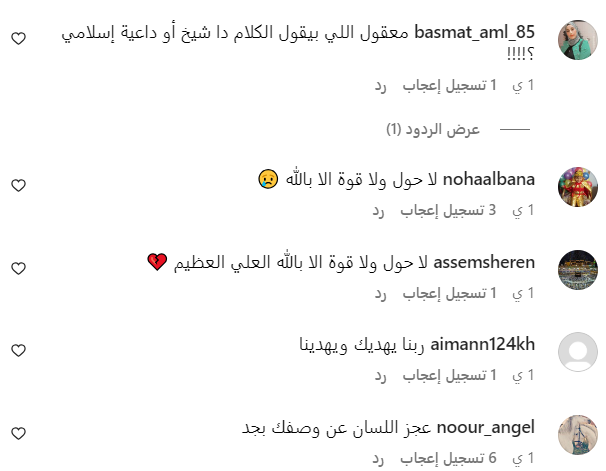 كما علق آخرون: "المفروض تقول الصحابة وليس الفنانين .. اومال برامج التوك شو اللي قائمة علي خلافاتهم والشركة والغضايح دي ايه يا فضيلة الشيخ جاكسون .. عجز اللسان عن وصفك بجد .. لا حول ولاقوة الا بالله بالعلي العظيم .. ايوه بيأكلوا في بعض وينشروا مشاكل حياتهم الشخصية عشان التريند .. برافو يا مولانا خالد الجندي بقا الله يعينك على نفسك".