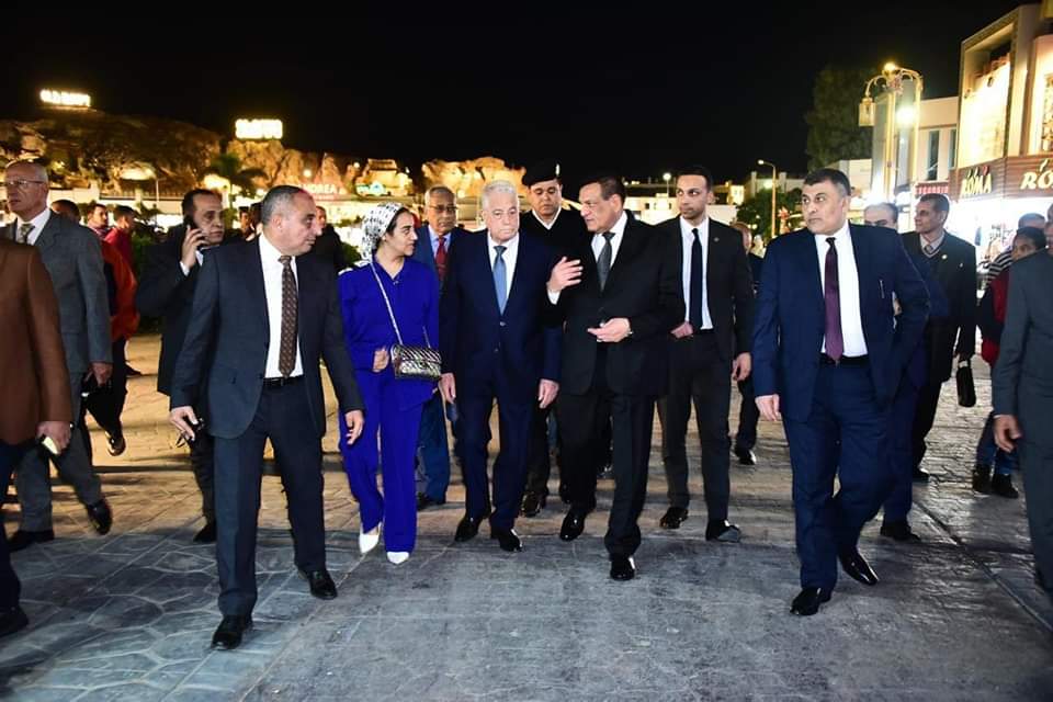 وزير التنمية المحلية ومحافظ جنوب سيناء يقومان بجولة تفقدية بالسوق التجاري القديم بشرم الشيخ