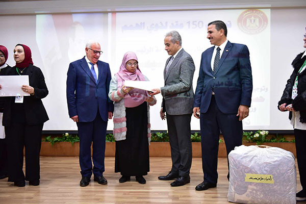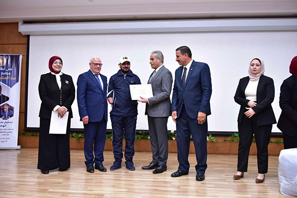 سَلَّم حسن شحاتة وزير العمل، واللواء أ.ح عادل الغضبان محافظ بورسعيد، اليوم الأحد، بقاعة السفيرة فايزة أبو النجا ، 50 عقد عمل لذوي همم ،من ضمن 150 عقدًا،  للعمل بشركات قطاع خاص بالمحافظة ، وماكينات خياطة جوائز لأوائل الخريجين من عربة التدريب المهني المُتنقلة التابعة للوزارة ، التي تقوم بدورها داخل المحافظة، وتساعدهم على إقامة مشروعات صغيرة توفر لهم حياة كريمة ،وكذلك حقائب أدوات للمُتدربين على مهنة توصيل الكهرباء وصيانة المحمول، وشهادات إتمام التدريب المهني للمُتدربين والمُدربين ،بمراكز التدريب الثابتة التابعة للمديرية،على المهن التي يحتاجها سوق العمل .
