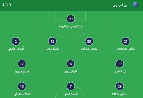 خط الدفاع: لوكاس هيرنانديز، لوكاس بيرالدو، دانيلو بيريرا، أشرف حكيمي.
