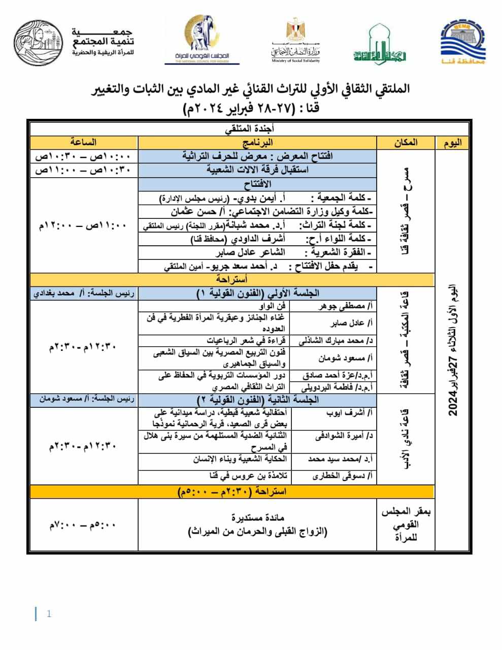 ويُنظم الملتقي جمعية تنمية المجتمع للمرأة الريفية والحضرية بقنا، بالتعاون مع المجلس الأعلى للثقافة، ومحافظة قنا، والمجلس القومي للمرأة.