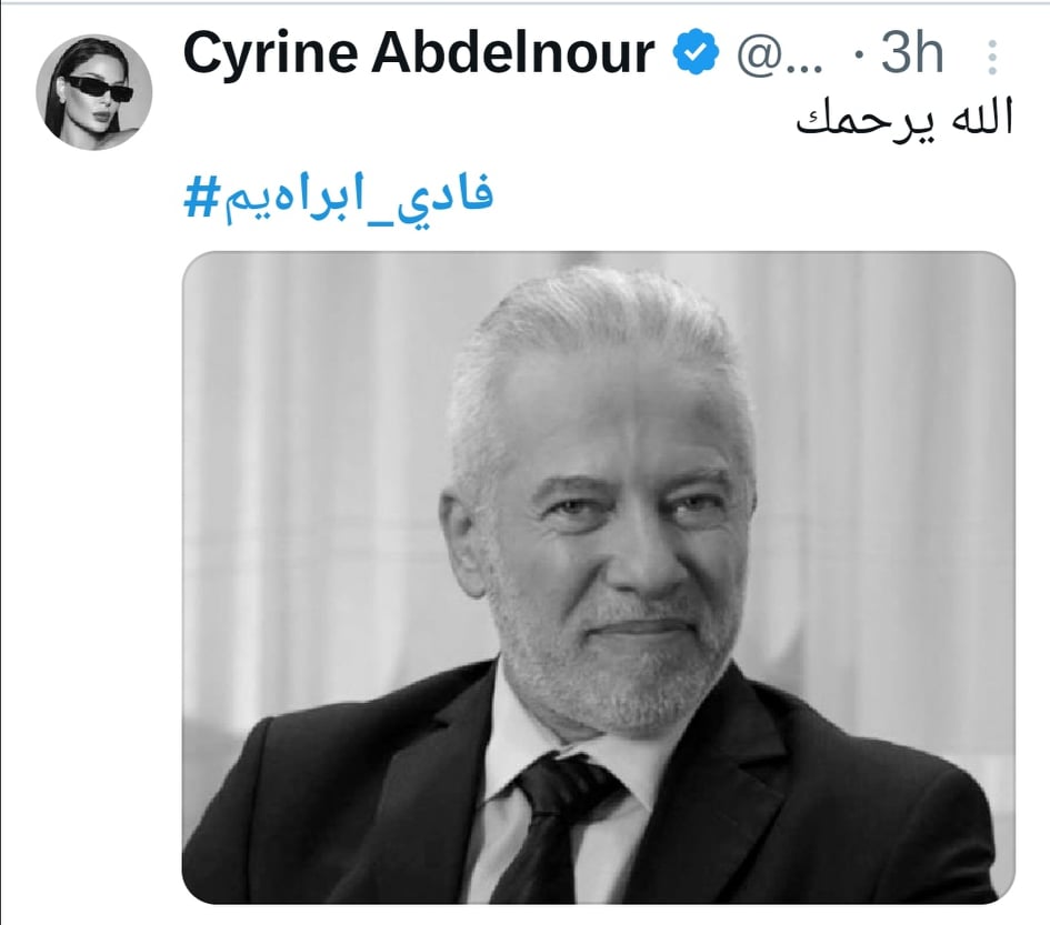 قدمت الفنانة سيرين عبدالنور تعازيها ودعواتها للفنان فادي إبراهيم، وذلك عبر حسابها الرسمي على موقع التدوينات القصيرة إكس.