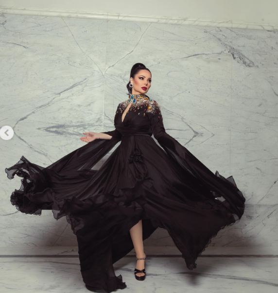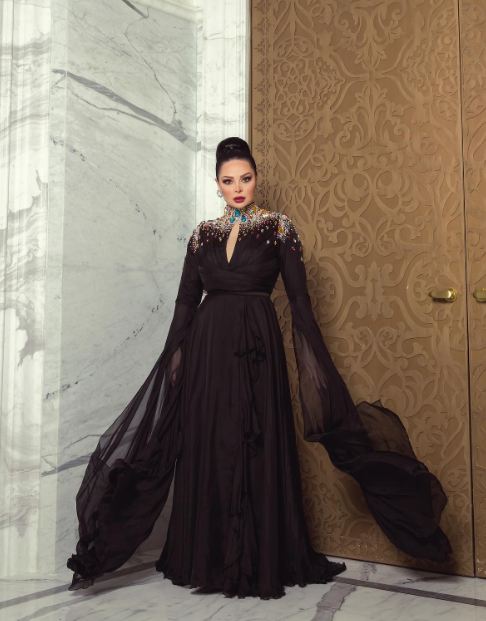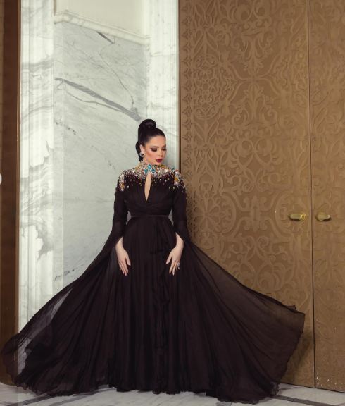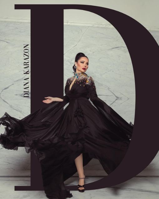 وتألقت ديانا كرزون بإطلالة ساحرة، مزجت بين الأحتشام والأناقة في آن واحد، حيث ارتدت فستانا طويلا مجسما من أعلى ومنفوشا من أسفل لتبدو مثل الفراشة، صمم من الحرير المزين من أعلى بالكريستال الملون لتبدو كالفراشة في البستان.