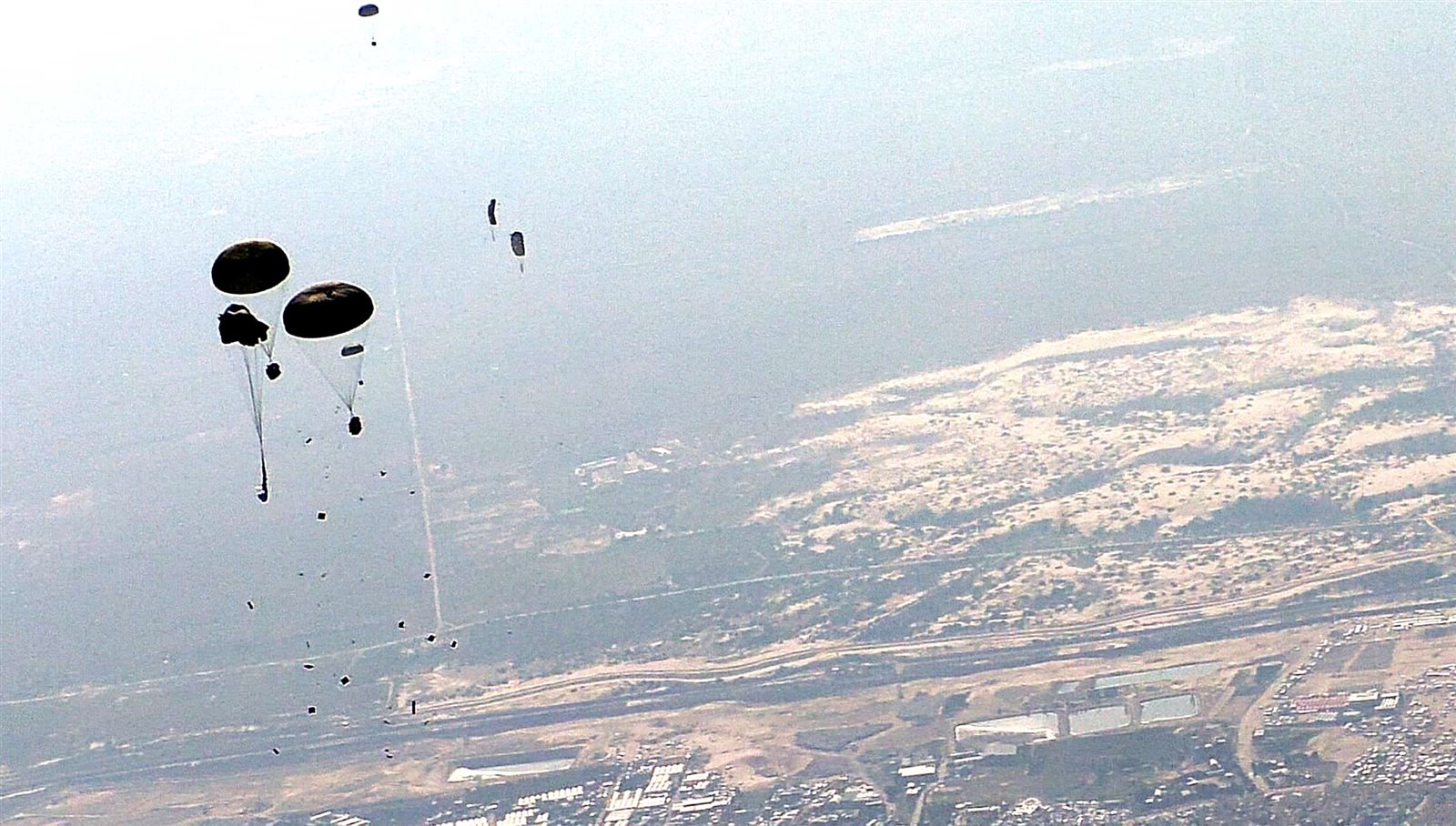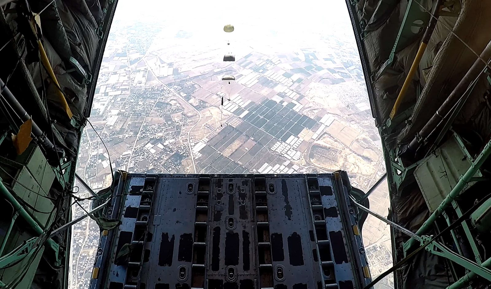 إستمراراً لجهود الدولة المصرية الداعمة للشعب الفلسطينى الشقيق ، نفذت عدد من طائرات النقل العسكرية التابعة للقوات الجوية المصرية بالتعاون مع عدد من الدول الشقيقة والصديقة أعمال الإسقاط الجوى لأطنان من المساعدات الإنسانية ومعونات الإغاثة العاجلة بالمناطق المتضررة بشمال قطاع غزة .