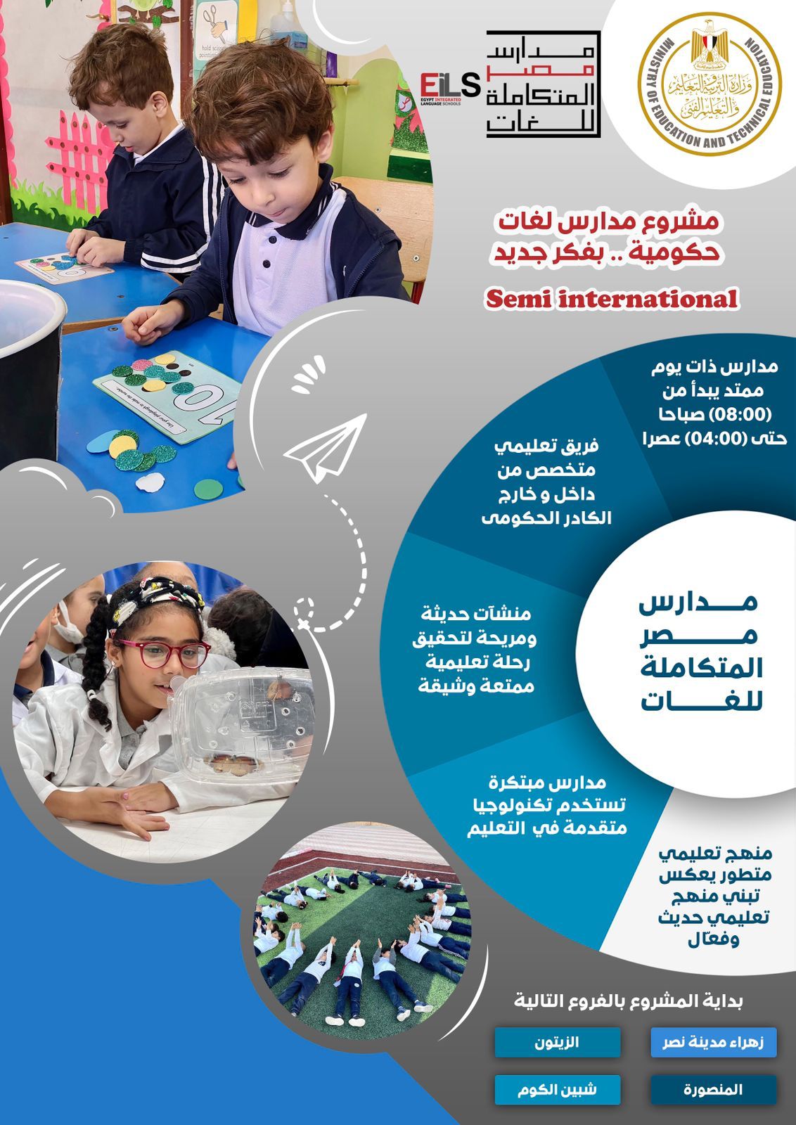 ودشنت وزارة التربية والتعليم مدارس مصر المتكاملة لغات في مناطق زهراء مدينة نصر والمنصورة والزيتون وشبين الكوم.