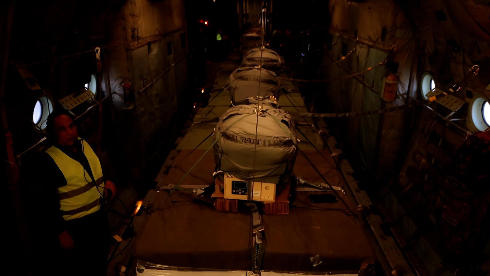 تنفيذاً لتوجيهات الرئيس عبدالفتاح السيسى رئيس الجمهورية القائد الأعلى للقوات المسلحة بإستمرار الجسر الجوى لنقل المساعدات الإنسانية العاجلة للأشقاء الفلسطينيين بقطاع غزة , أقلعت عدد من طائرات النقل العسكرى المصرية والإماراتية من مطار العريش لتنفيذ أعمال الإسقاط الجوى ليلاً لعشرات الأطنان من المساعدات والمواد الإغاثية العاجلة للتخفيف من الأزمة الإنسانية الحادة التى يعانى منها المواطنين الفلسطينيين فى شمال غزة .