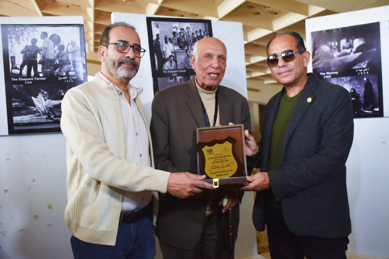 وخلال المعرض قام كلاً من الدكتور خالد عبد الجليل مستشار وزير الثقافة والناقد السينمائي عصام زكريا بتسليم درع تكريم مهرجان الإسماعيلية للمصور الكبير محمد بكر تقديراً لمشواره الكبير.
