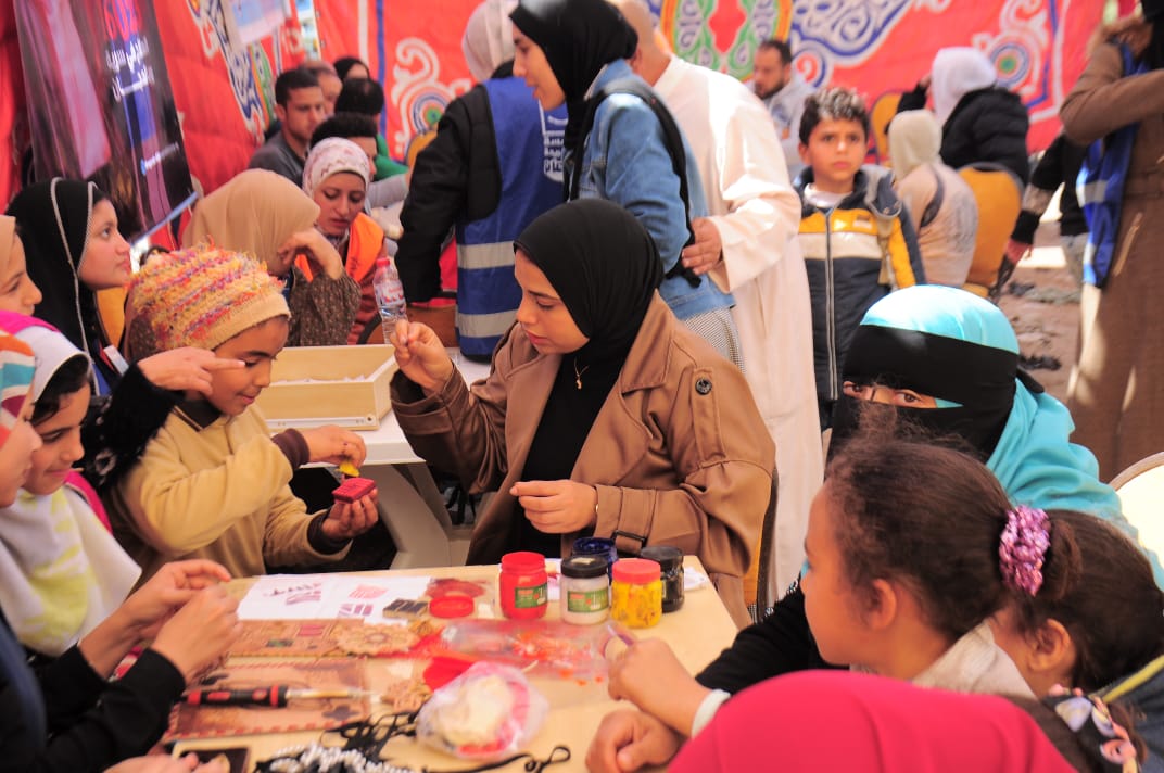 وتم تنفيذ ورشة عمل لتنمية الصناعات الحرفية مثل صناعة الجلود وطباعة المنسوجات وانتاج الحلي والاكسسوارات وتم  التدريب والتعرف على انواع الاقمشة والتقنيات المستخدمة فى صناعة الملابس وذلك بهدف التشجيع على إقامة المشروعات الصغيرة والمتناهية الصغر فى إطار دعم الاسر الاكثر احتياجا وزيادة دخل الاسرة المصرية والحفاظ على كيانها.