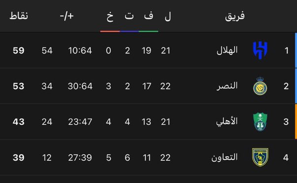 ترتيب الدوري السعودي بعد تعادل النصر مع الحزم اليوم