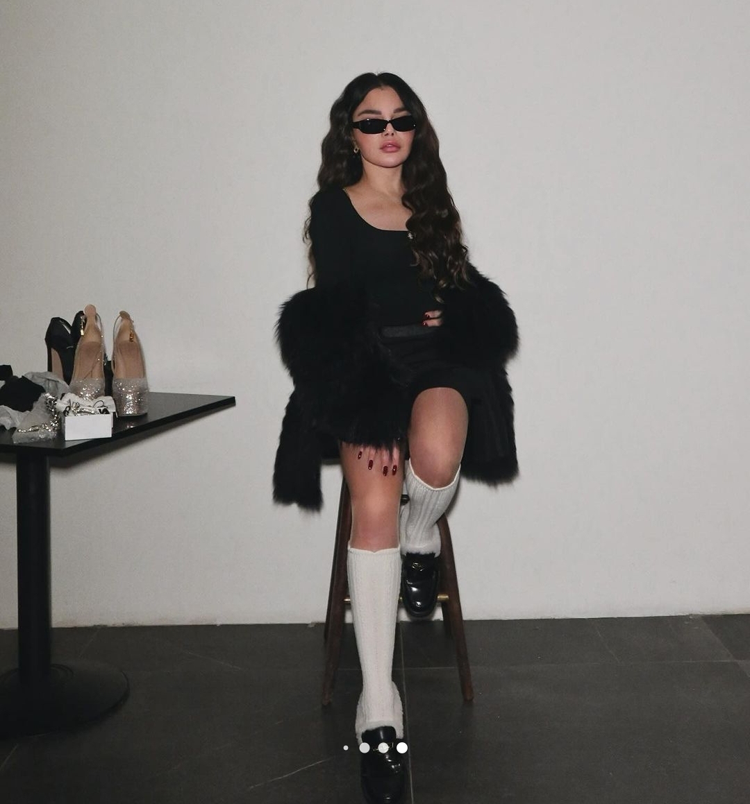 وبدت هيفاء وهبي بإطلالة شتوية، فستان قصير مجسم، عليه بالطو فرو باللون الأسود، وعليه شراب صوف أبيض اللون فيما انتعلت حذاء بكعب عال.