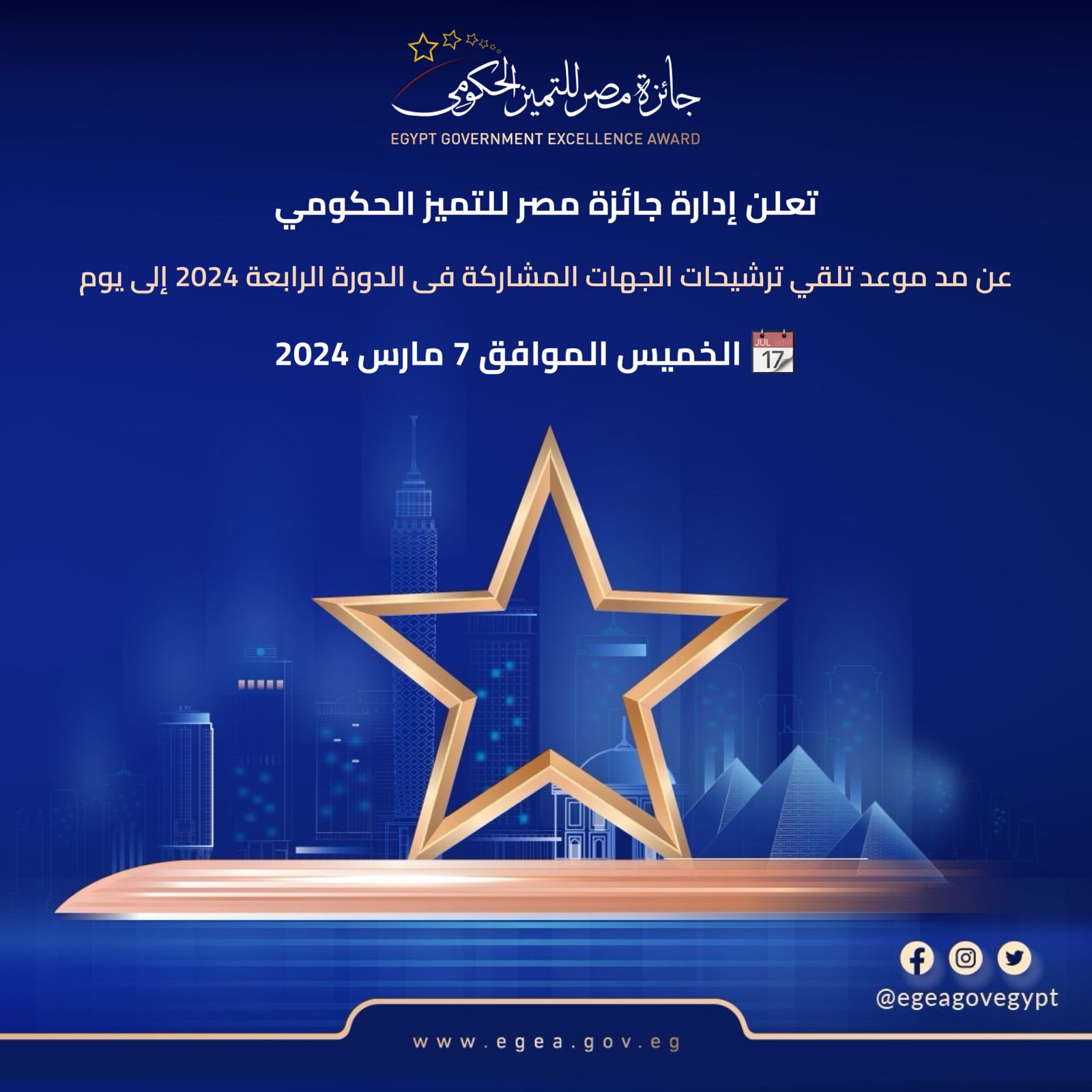 جائزة مصر للتميز الحكومي تعلن مد موعد تلقي طلبات الترشح للدورة الرابعة