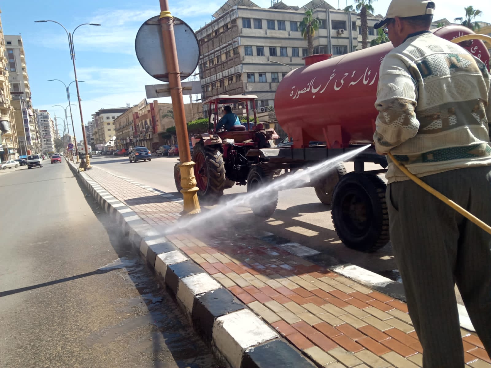 حيث تم غسيل ارصفه شارع الجمهورية والجيش وعبد السلام عارف وتم تشغيل المكنسيات بشارع الجيش وسعد زغلول وقناه السويس والجمهورية والمشايه وأحمد ماهر و الترعه والعبور وتم تقليم أشجار محيط قصر الشناوي بشارع الجمهوريه و حديقه شجره الدر و حديقه عروس النيل والحدائق المفتوحه بشارع الجيش وزراعه عدد 140 شتله من الأشجار المثمرة باحواض الزرع في شارع الجيش وقناه السويس وتم استكمال أعمال انشاء الرصيف الفاصل بشارع سكه سندوب وترميم الارصفه بشارع فخر الدين خالد واستكمال صيانه احواض الأشجار بالحدائق المفتوحه بشارع الجيش.