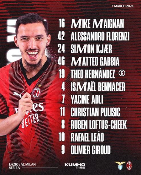 تشكيل ميلان الرسمي أمام لاتسيو في الدوري الايطالي