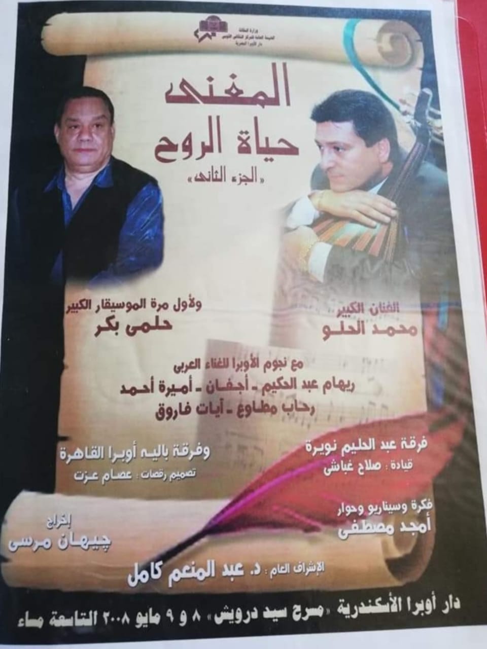 و تأليف موسيقى جمال سلامة وقاد الأوركسترا المايسترو صلاح غباشي، وعرض العمل على خشبة مسرح أوبر إسكندرية في 2008