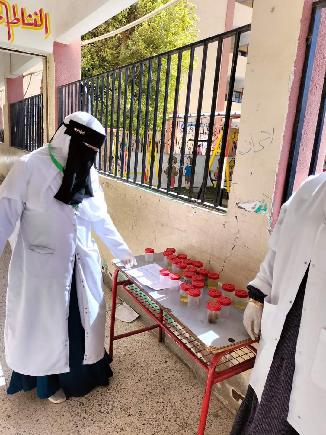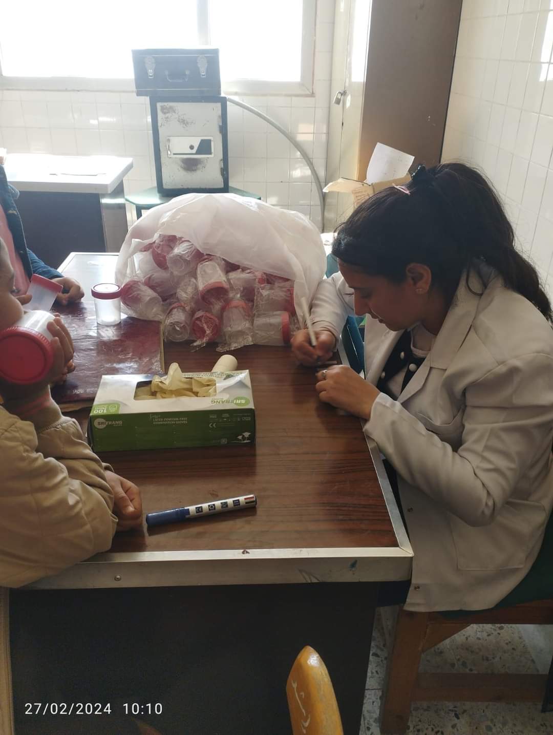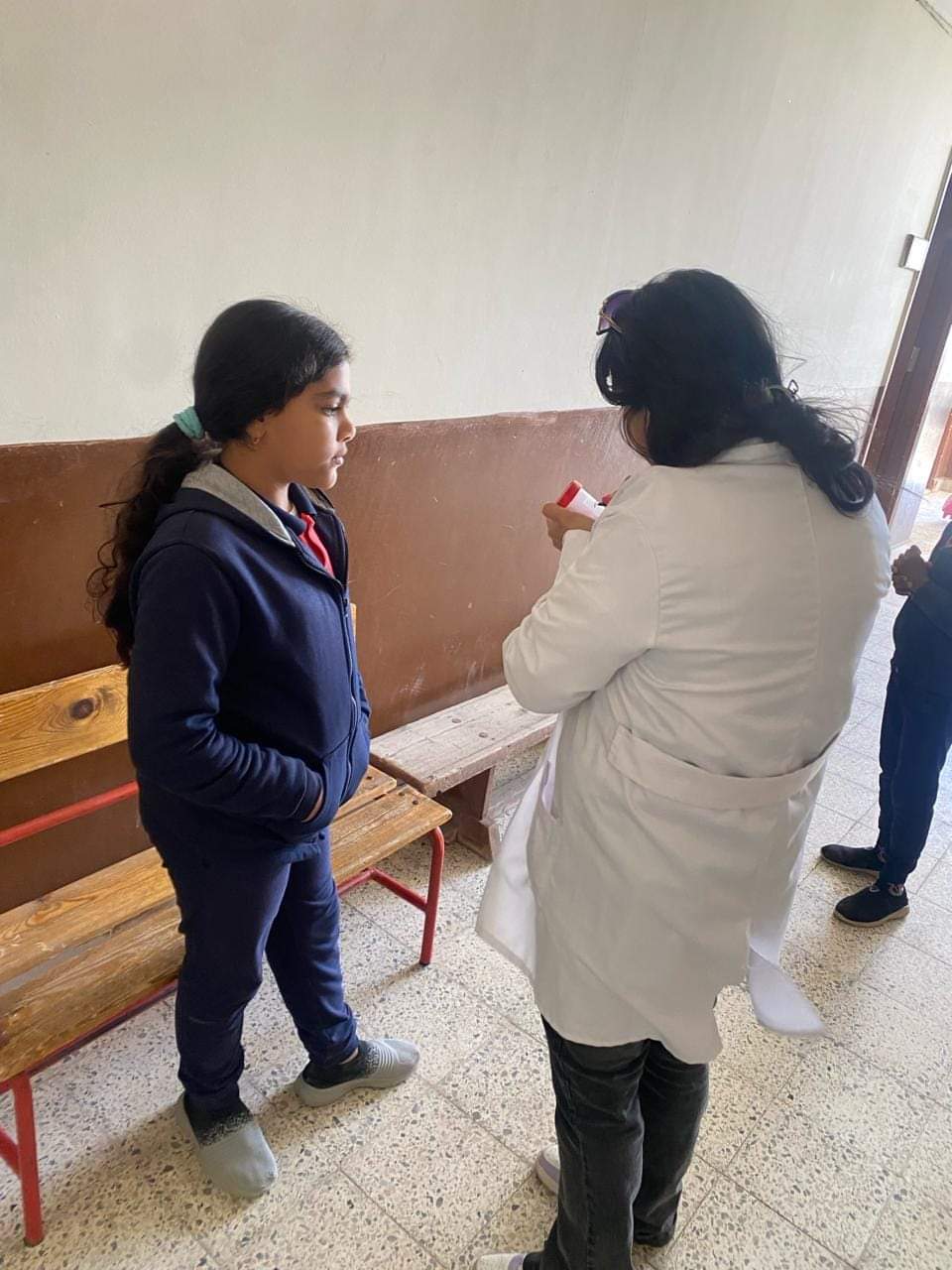 وقام بمتابعة عملية الفحص دكتورة رشا زنفل مدير ادارة البلهارسيا والطفيليات المعوية