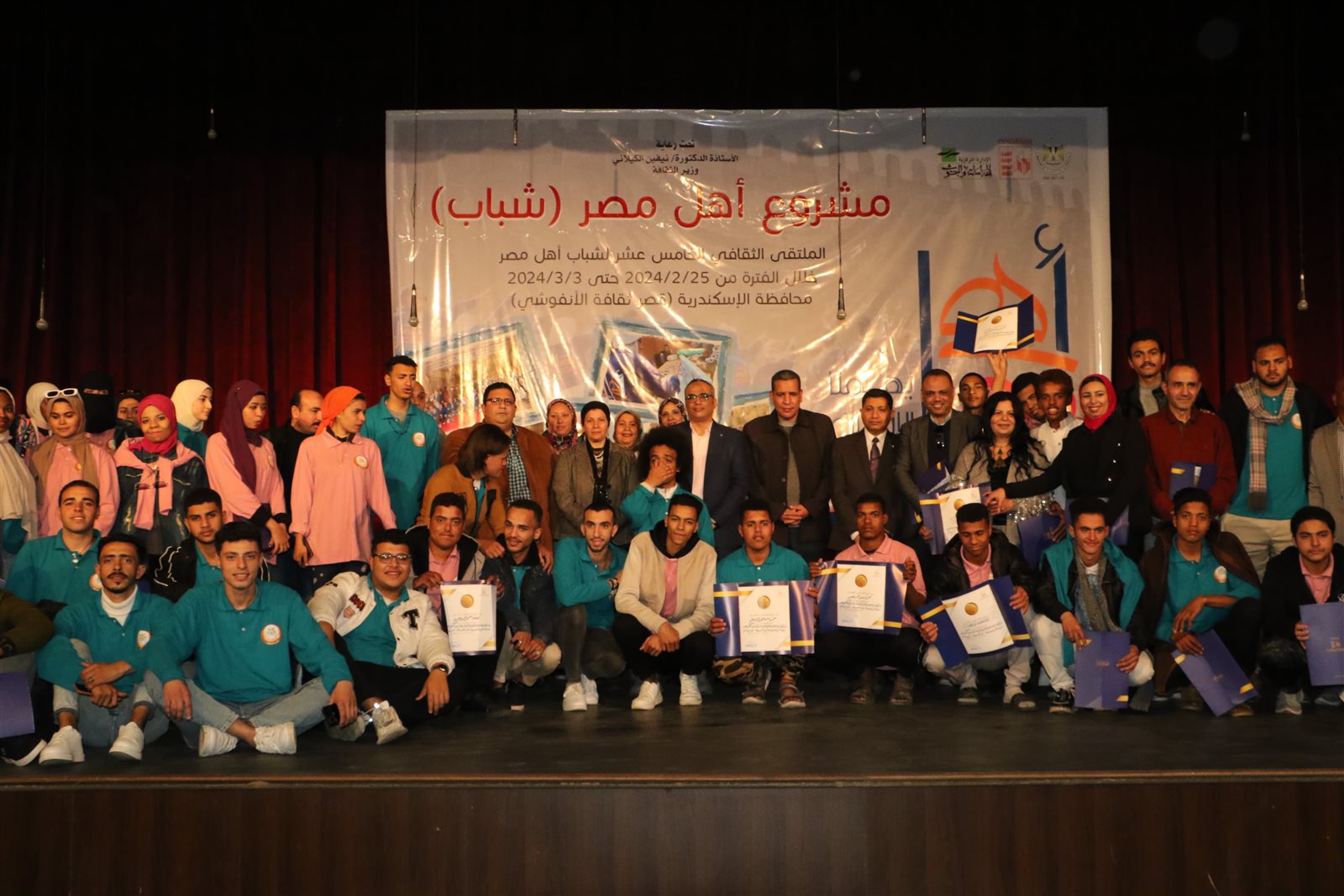 اهل مصر .. اختتمت اليوم السبت فعاليات الملتقى الثقافي الخامس عشر لشباب المحافظات الحدودية، الذي أقيم بالإسكندرية على مدار أسبوع، برعاية الدكتورة نيڤين الكيلاني وزير الثقافة، ضمن مشروع "أهل مصر" المعني بأبناء المحافظات الحدودية.