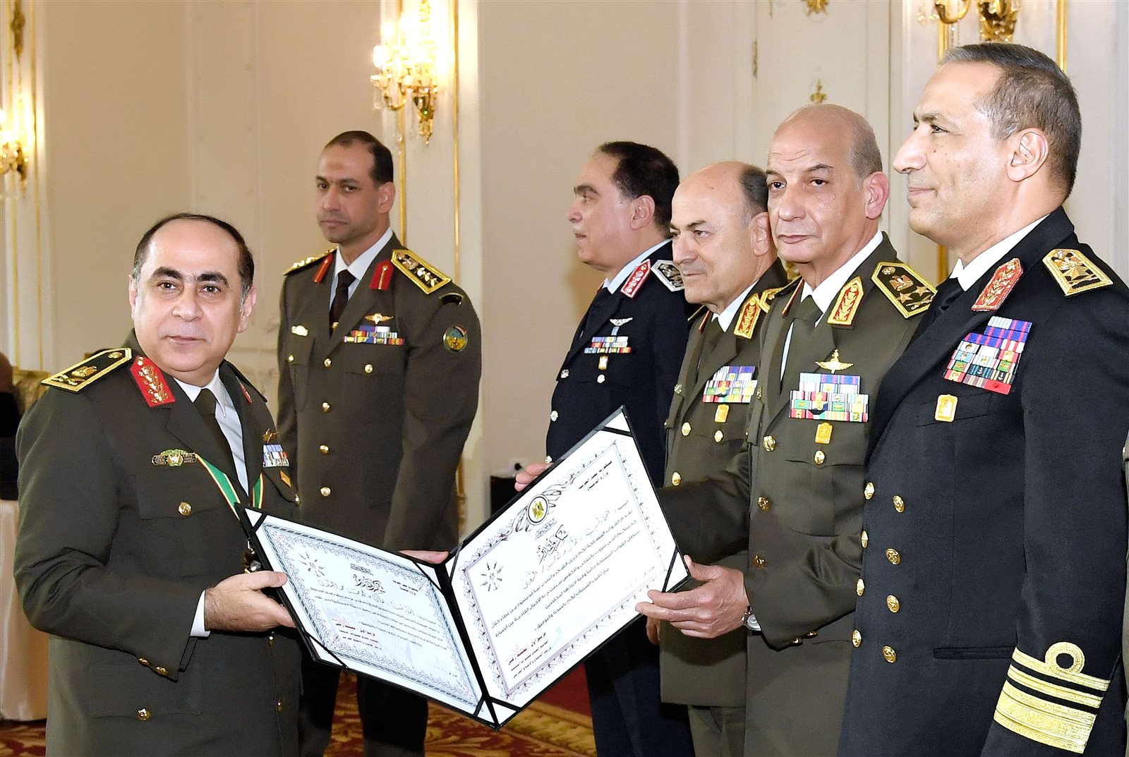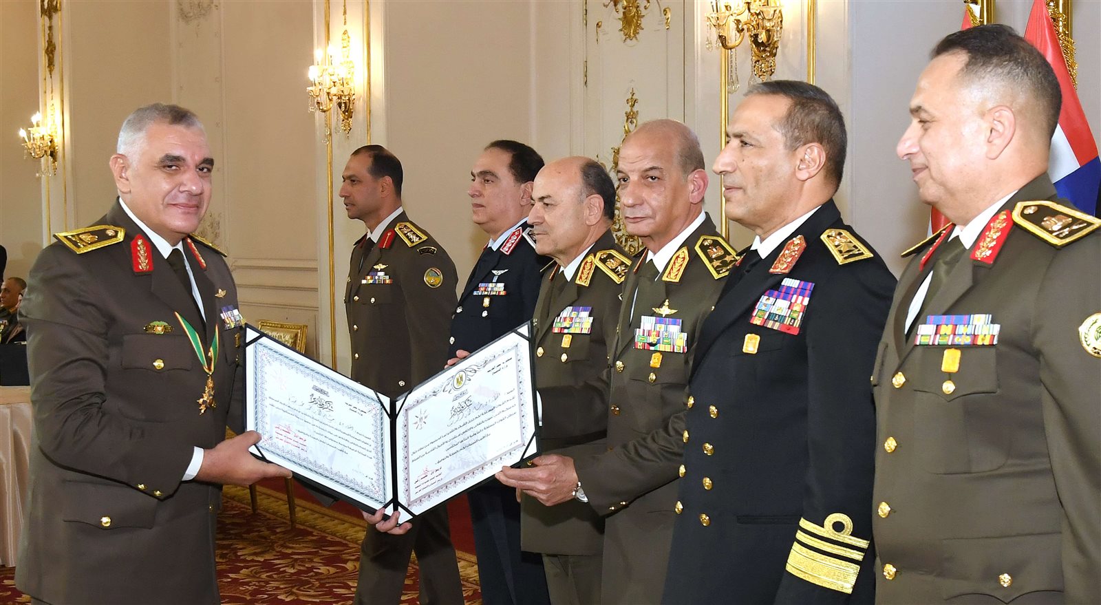 قام القائد العام بتقليد القادة المكرمين وسام الجمهورية العسكرى الذى صدق على منحه لهم الرئيس عبدالفتاح السيسى، رئيس الجمهورية، القائد الأعلى للقوات المسلحة، تقديرًا لجهودهم الوطنية طوال مدة خدمتهم بالقوات المسلحة.
