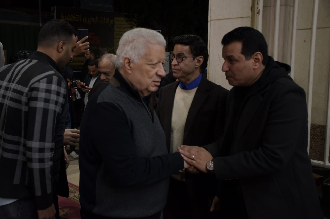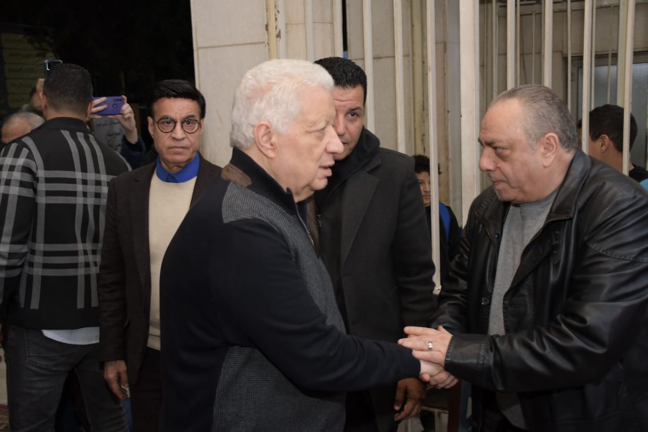 عزاء حلمي بكر| مرتضى منصور يقف بجانب أسرته
