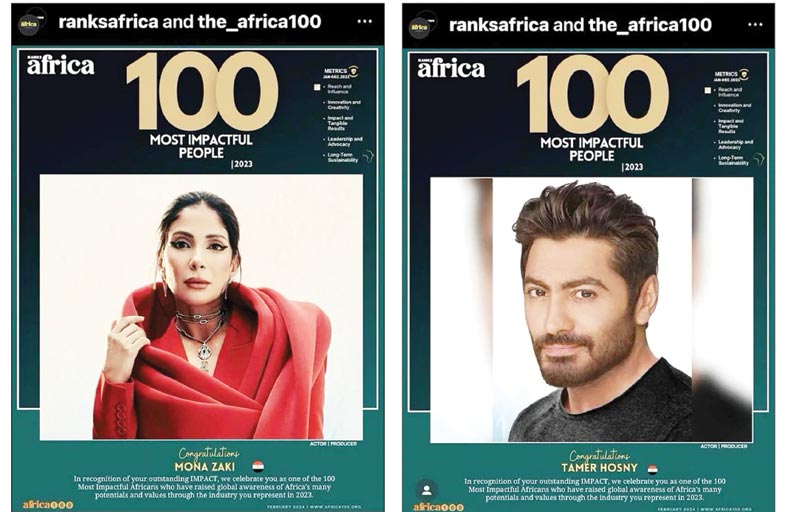 منى زكى وتامر حسنى من أفضل 100 شخص فى أفريقيا