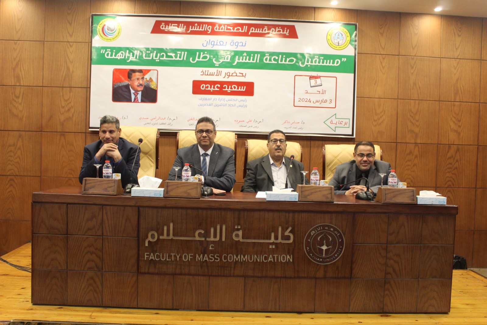 شهدت الندوة التثقيفية “مستقبل النشر في ظل التحديات الراهنة” التي نظمها قسم الصحافة والنشر بإعلام الأزهر إقبالًا كبيرًا من طلاب الكلية.