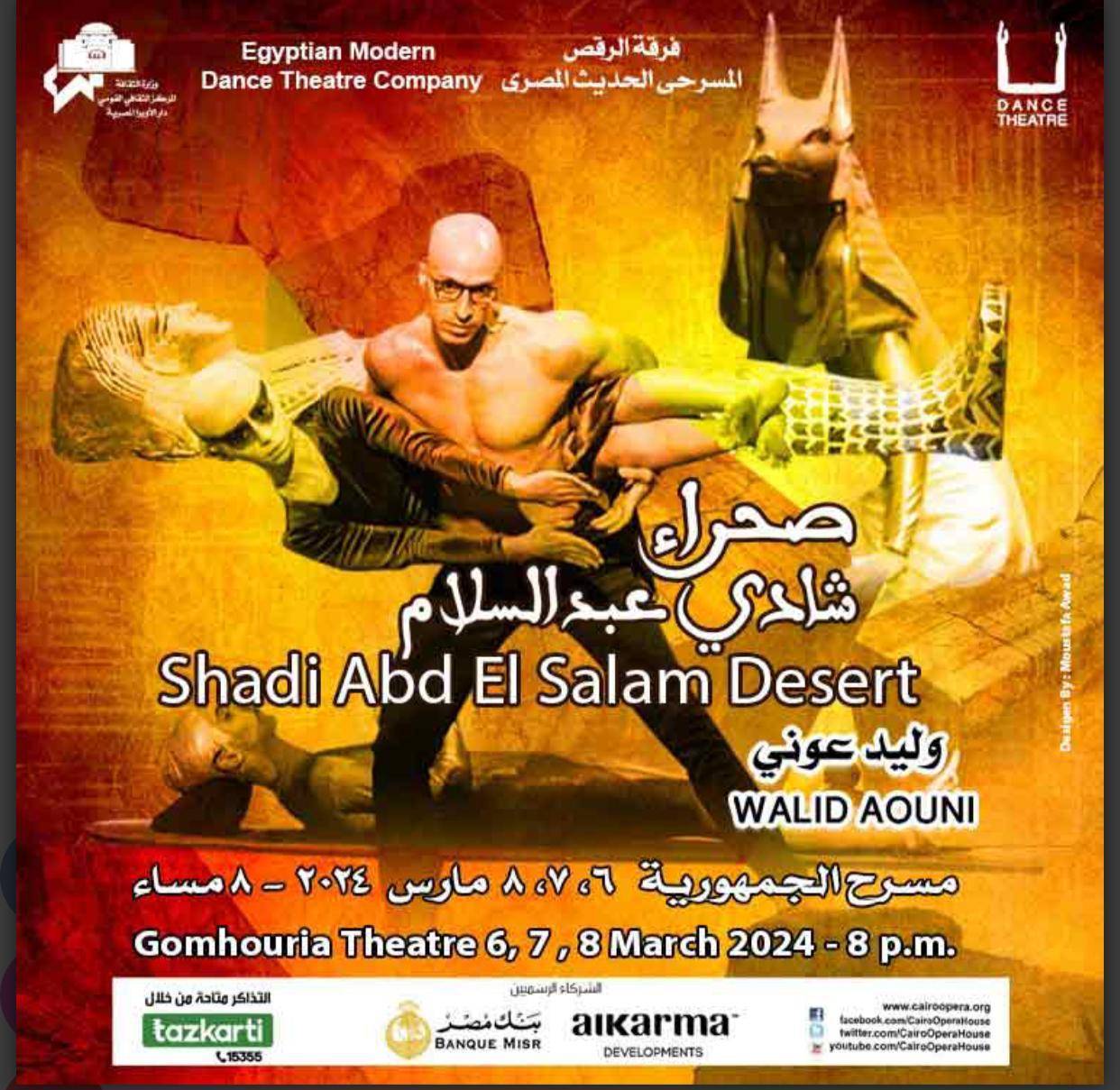 تواصل وزارة الثقافة خطتها الهادفة إلى تقديم كنوز الإبداع المصرى فى مختلف المجالات، حيث تقدم دار الأوبرا برئاسة الدكتورة لمياء زايد، بعد غياب 27 عامًا عرض صحراء شادى عبدالسلام لفرقة الرقص المسرحي الحديث تصميم واخراج وليد عونى وذلك فى الثامنة مساء أيام الأربعاء، الخميس والجمعة 6 ، 7 ، 8 مارس على مسرح الجمهورية.