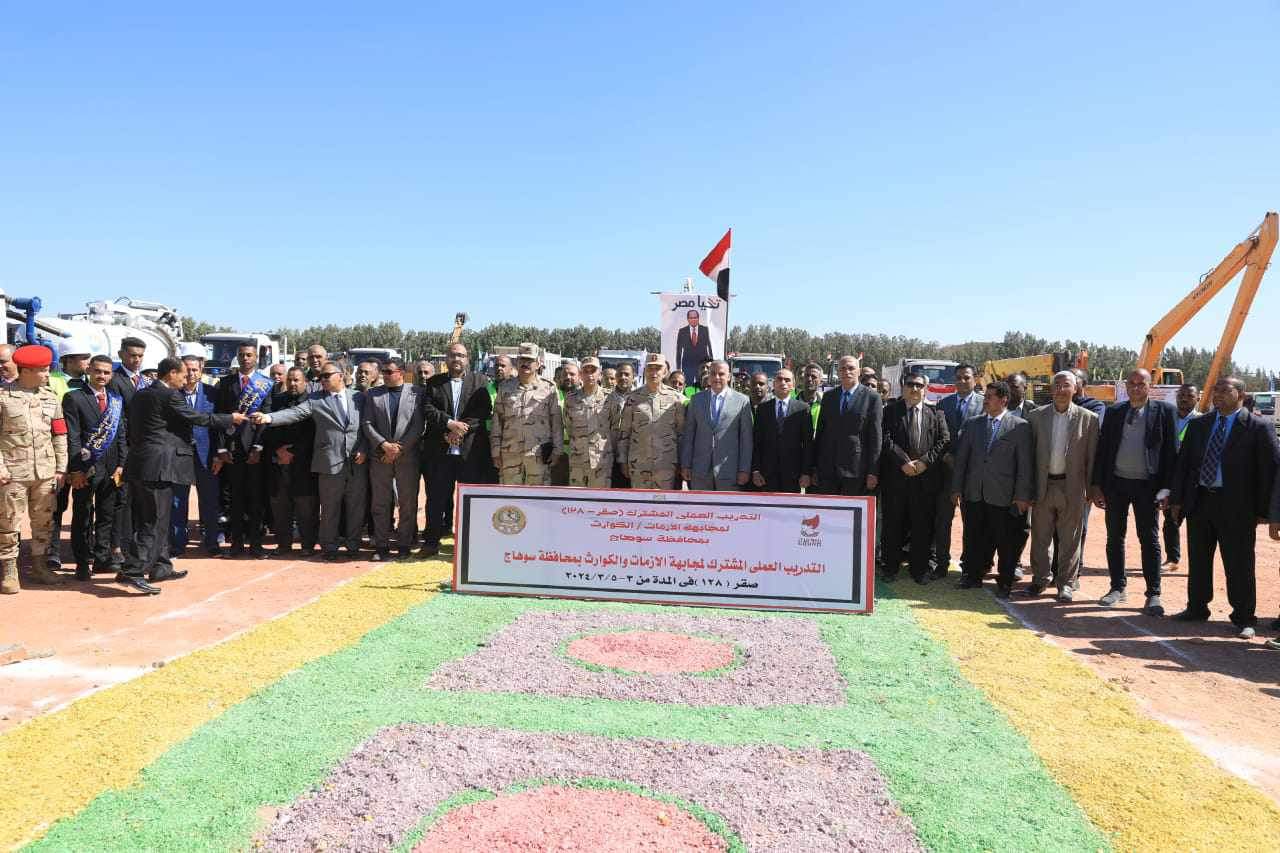 اصطفاف المعدات بتدريب "صقر 128" لمواجهة الأزمات والكوارث بسوهاج