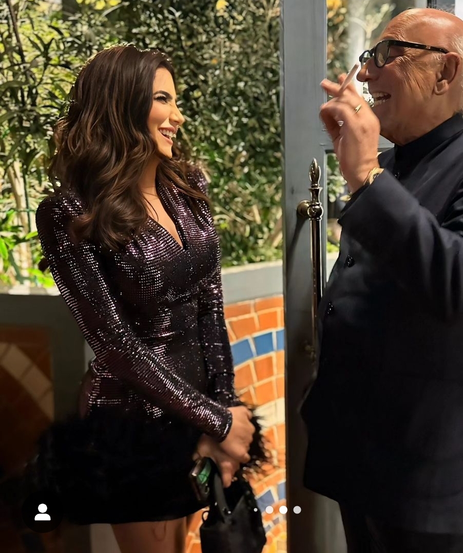 وبدت مي عمر بإطلالة ساحرة مواكبة لاحدث صيحات موضة فساتين السهرة لعام 2024، حيث ارتدت فستان قصير مجسم، بأكمام طويلة، صمم من قماش الترتر، المزين بالريش من الأطراف وتزينت ببعض المجوهرات الراقية.
