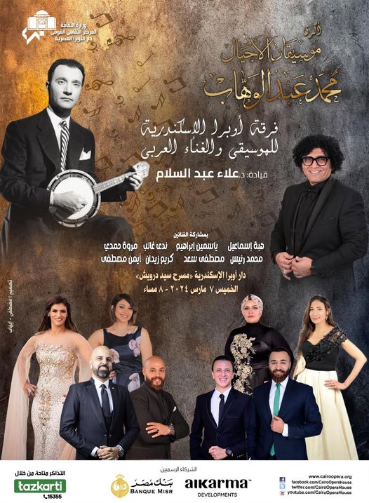 تحيي فرقة أوبرا الإسكندرية للموسيقى والغناء العربي ذكرى موسيقار الأجيال محمد عبدالوهاب، على أحد مسارح أوبرا الإسكندرية، ضمن سلسلة إحياء التراث الغنائي المصري.