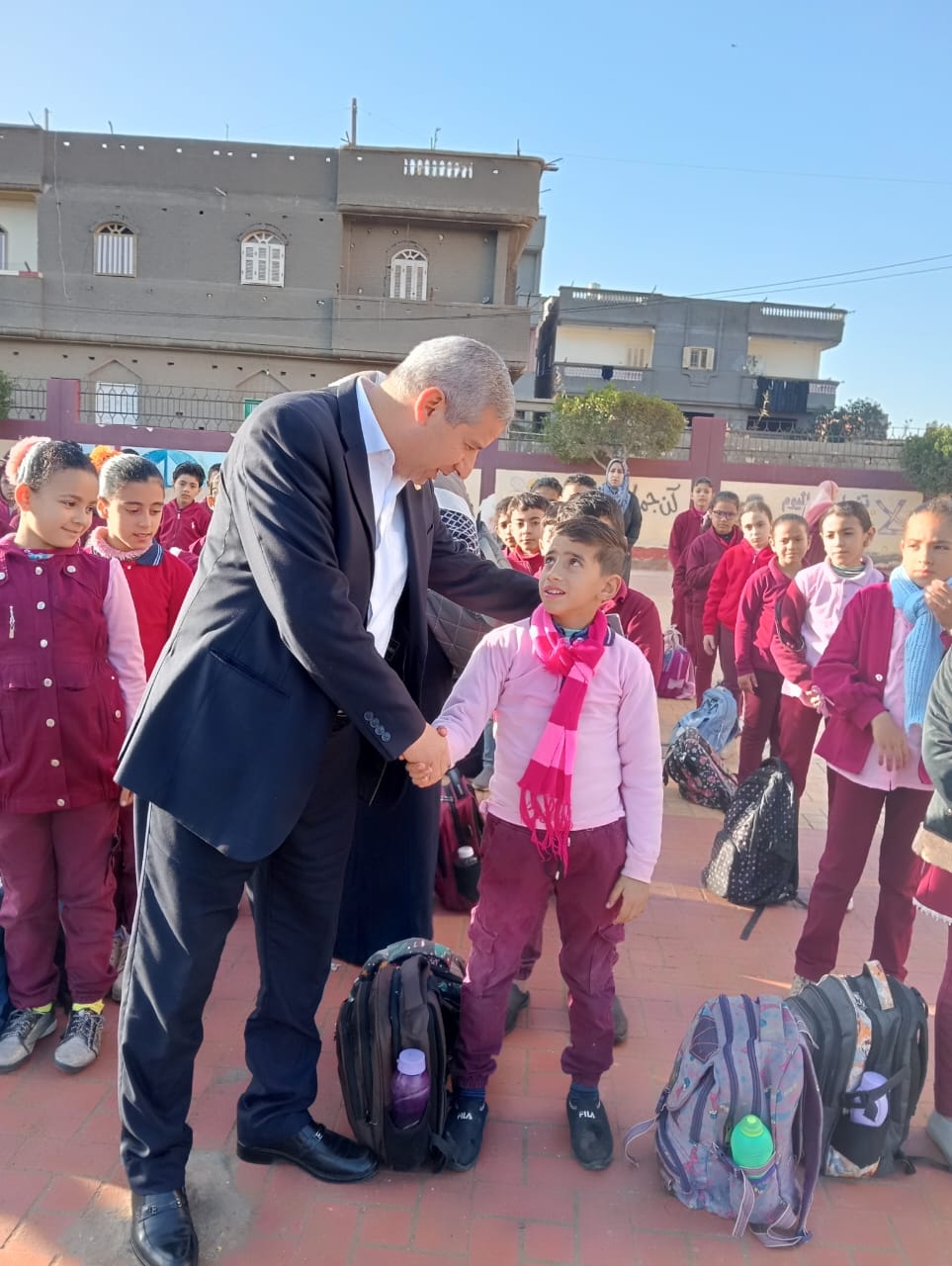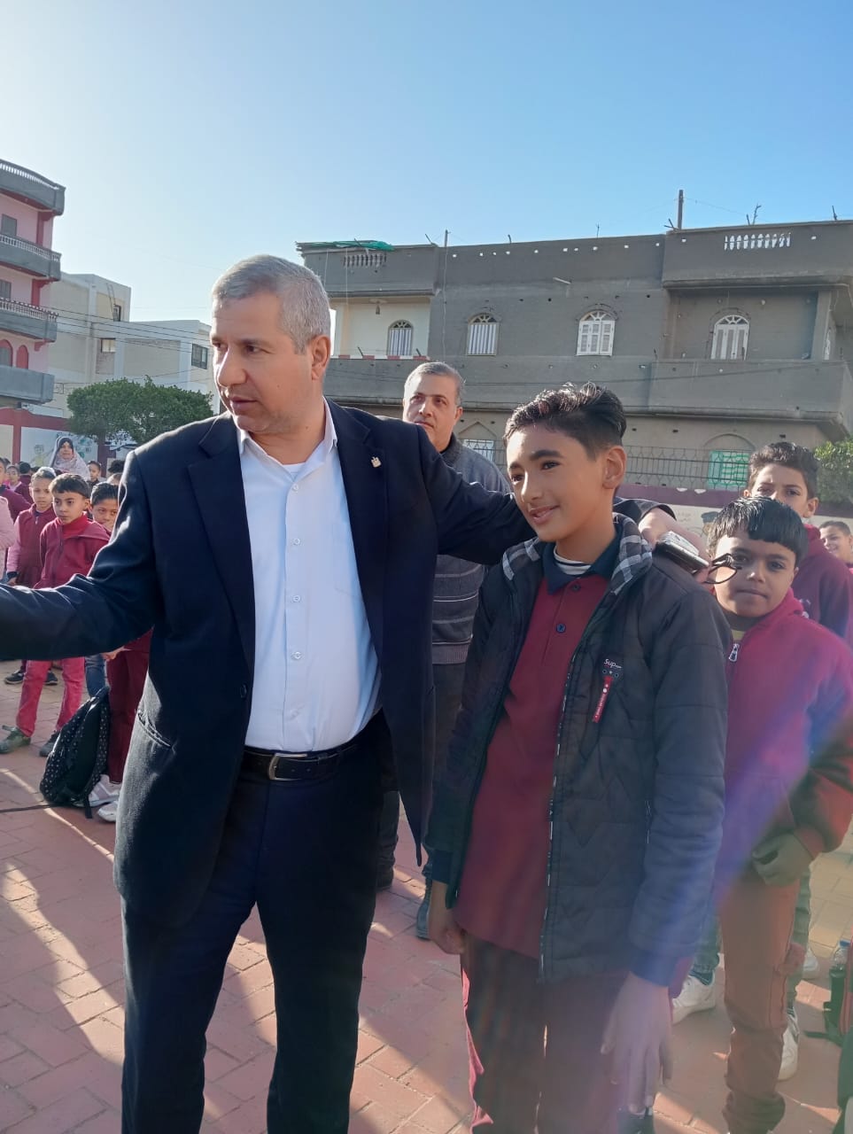 وحضر وكيل الوزارة  طابور الصباح وناقش الطلاب والطالبات حول العملية التعليمية كما تفقد الفصول الدراسية لمتابعة الانضباط التعليمي والإداري