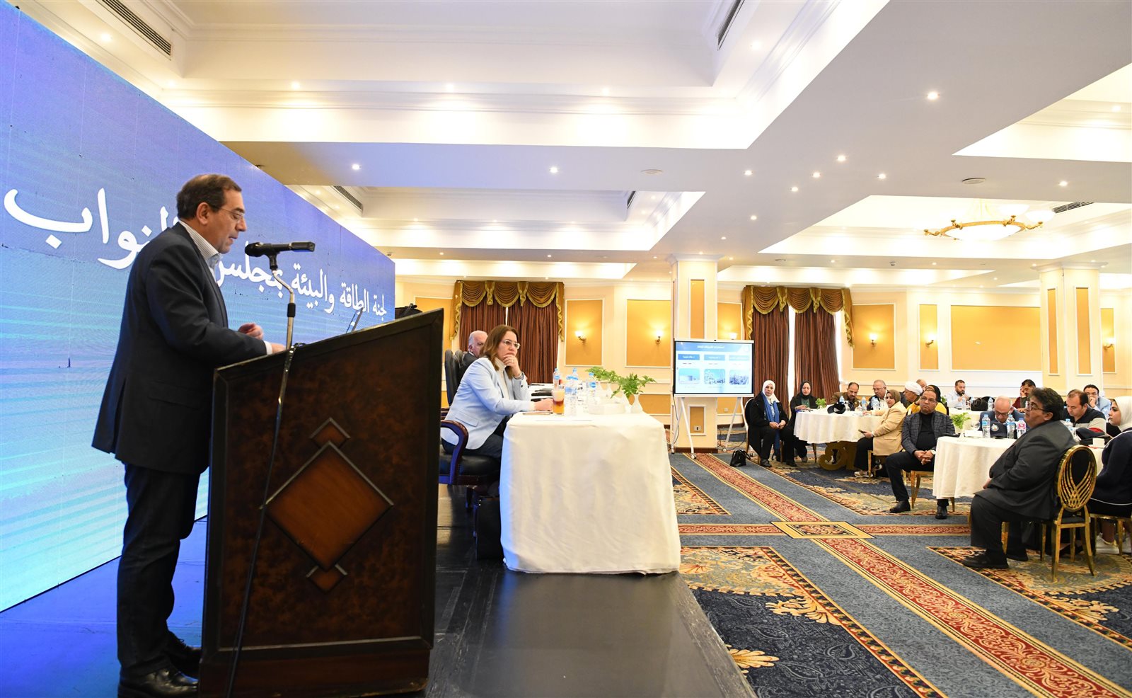 وأوضح الوزير جهود دعم أعمال البحث والاستكشاف فى منطقة البحر الأحمر التى تم توقيع اتفاقيات خاصة بها ومن المتوقع أن تبدأ أعمال الحفر بها مطلع العام المقبل ، كما أن لدينا المزايدة المطروحة عبر بوابة مصر الرقمية للاستكشاف والإنتاج لصالح شركة جنوب الوادى القابضة للبترول المقرر إقفالها نهاية الشهر الجاري ، ونعمل على تحقيق نتائج جيدة بهذه المنطقة البكر لجذب المزيد من الاستثمارات وزيادة نشاط البحث والاستكشاف بها، وأوضح الوزير أن رحلة العمل التى نسير فيها معاً تحتاج لاستمرار التكاتف فى مواجهة التحديات الحالية والتى نشهد معاً انفراجة فيما يخص توفير العملة الصعبة واستيراد المكونات الاستيرادية الخاصة بالمشروعات ، كما أوضح جهود الوزارة فيما يخص تنمية وزيادة الاستثمارات فى صناعة الهيدروجين ،لافتاً إلى أن الحكومة والمجلس كفريق واحد لصالح الوطن، وأن استمرار الدولة فى مسيرة الإصلاح الاقتصادي هو أمر ضرورى وحتمى فى ظل امتلاكها قاعدة بيانات قوية تمكنها من إيصال الدعم لمستحقيه الحقيقيين ، لافتاً إلى أهمية تبنى اللجنة دعم الوزارة فى زيادة الوعى فيما يخص الموضوعات البترولية المطروحة ، وأن تواجد أعضاء اللجنة بحقل ظهر ومتابعتهم على أرض الواقع اليوم لانتظامه فى الإنتاج وخطط الاستثمار والحفر الموضوعة يمثل دعماً كبيراً للعمل والجهود المبذولة.