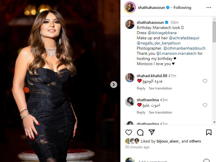 خضعت النجمة شذى حسون لجلسة تصوير جديدة أحتفالًا بعيد ميلادها فهي من مواليد برج الحوت، وشاركت متابعيها بمجموعة من صورها عبر حسابها الشخصي بموقع الإنستجرام.