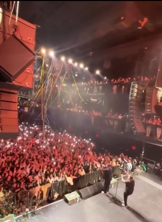 وفي لفتة وطنية مميزة رفع حماقي علم فلسطين في حفل نيويورك، وسط شعارات الجمهور “فلسطين حرة، بالروح بالدم نفديكي يافلسطين”.