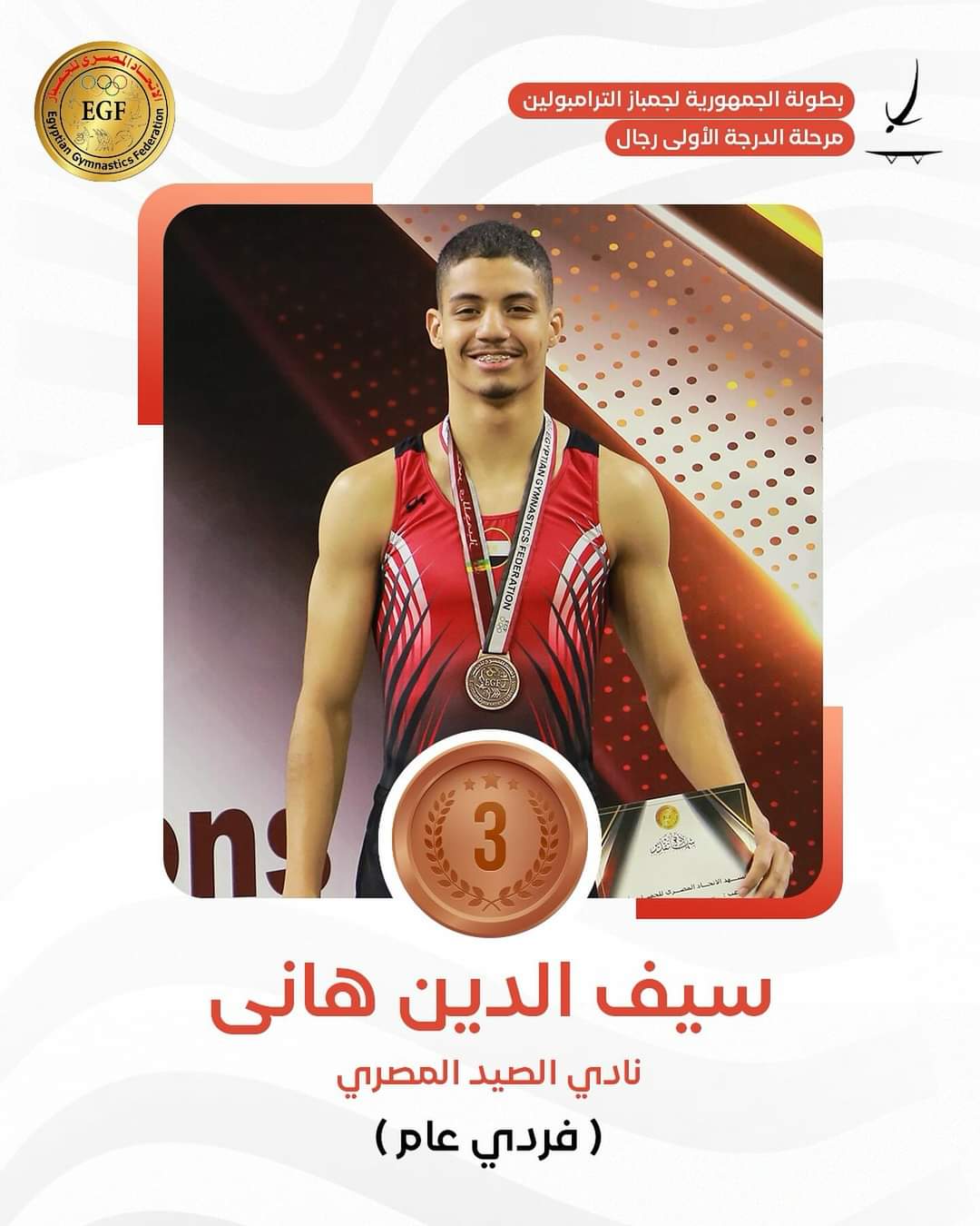 حصل فريق الدرجه الاولي رجال لجمباز الترامبولين بنادي الصيد المصري المكون من اللاعبين سيف هاني، مهاب أيمن، عمر وائل، اسماعيل ابراهيم، زياد ابراهيم، أدهم وليد ، محمود عبد الجيد على المركز الأول والميدالية الذهبية في منافسات الفرق للمرة الاولي في تاريخ مشاركاته ببطوله الجمهوريه لموسم 2023 ـ 2024.