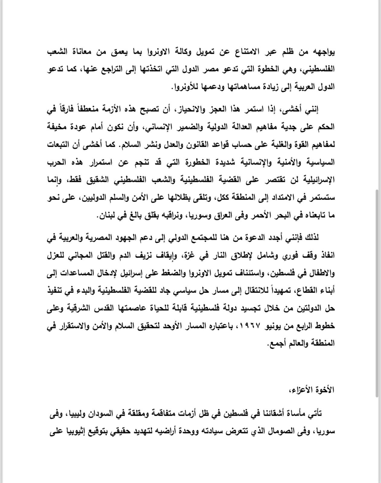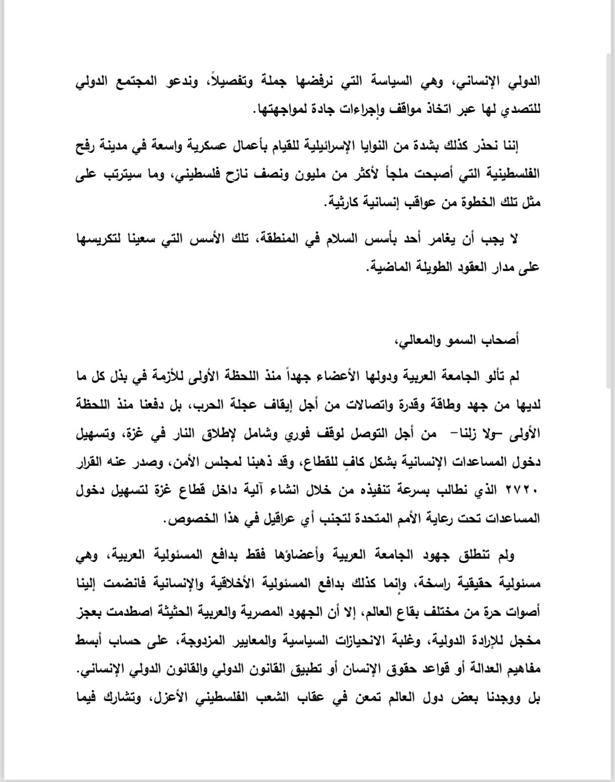 وناشد شكري المجتمع الدولي بضرورة وقف الحرب الإسرائيلية على قطاع غزة والضفة الغربية، والاستماع إلى صوت العقل .