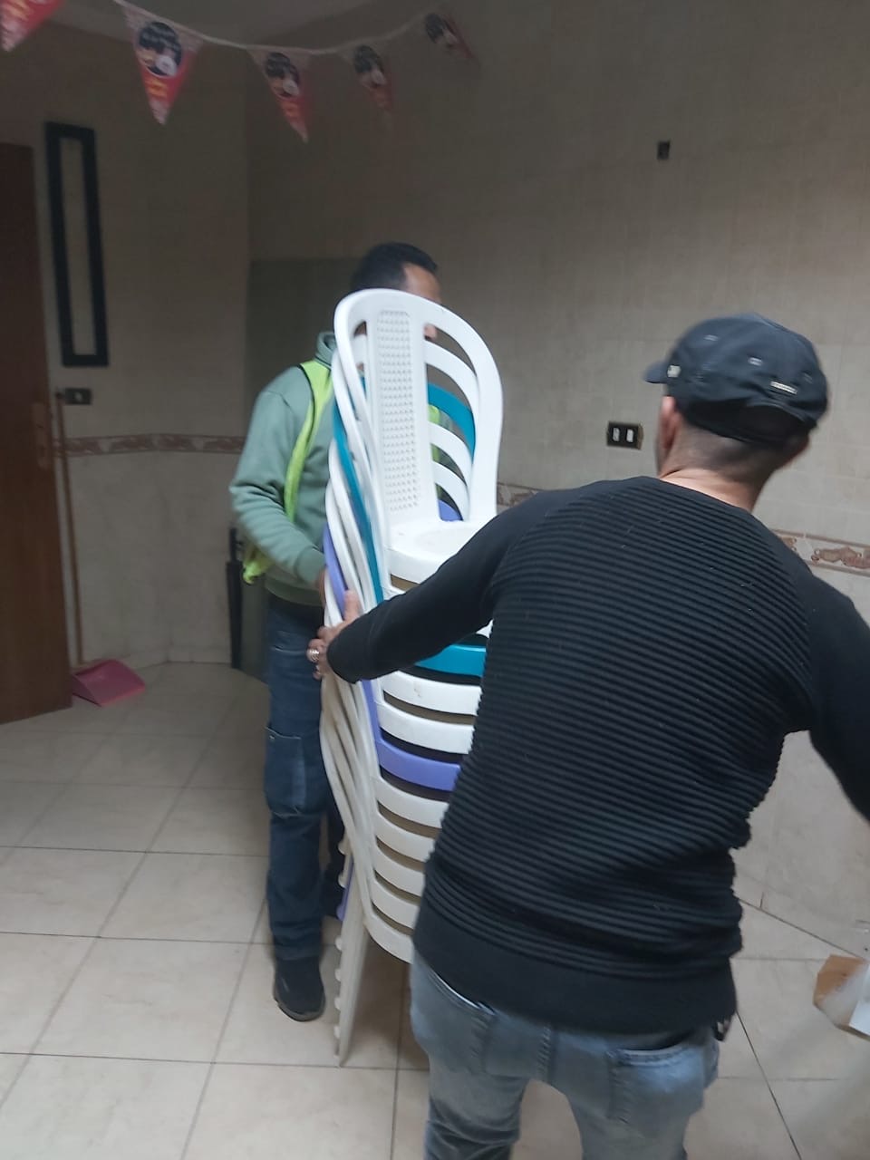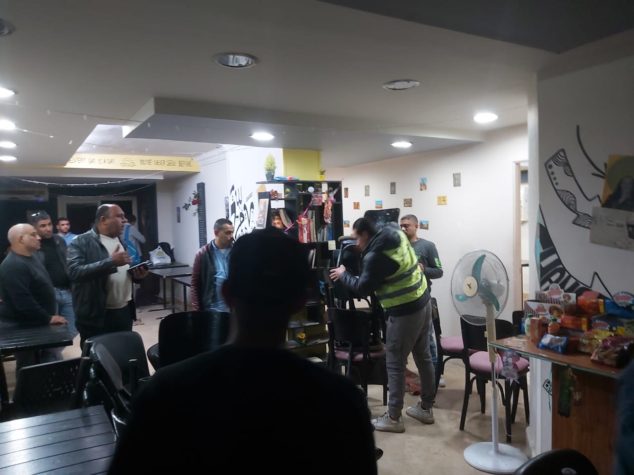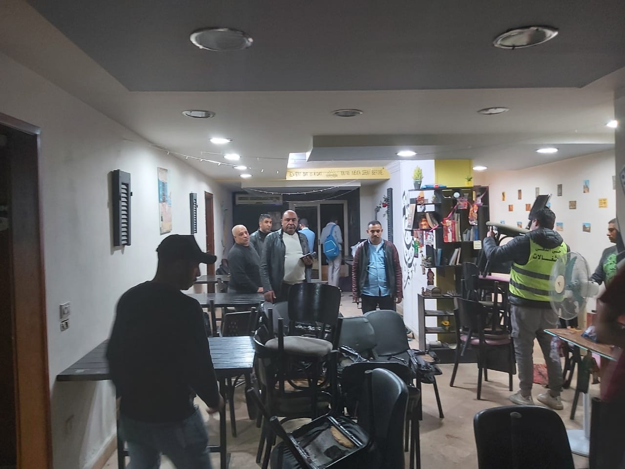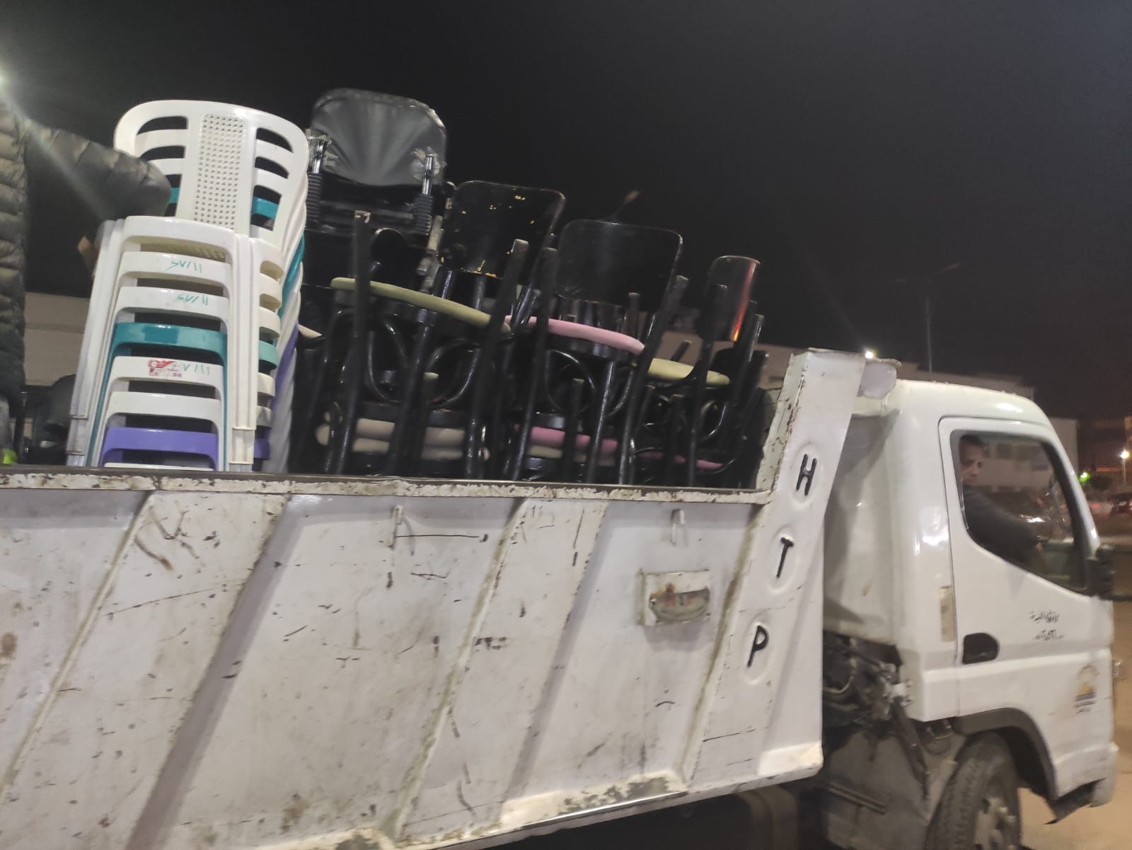 تم تحرير محضر بالواقعة والمضبوطات وهي عبارة عن ٥٧ كرسي واتنين شاشة كبيرة.