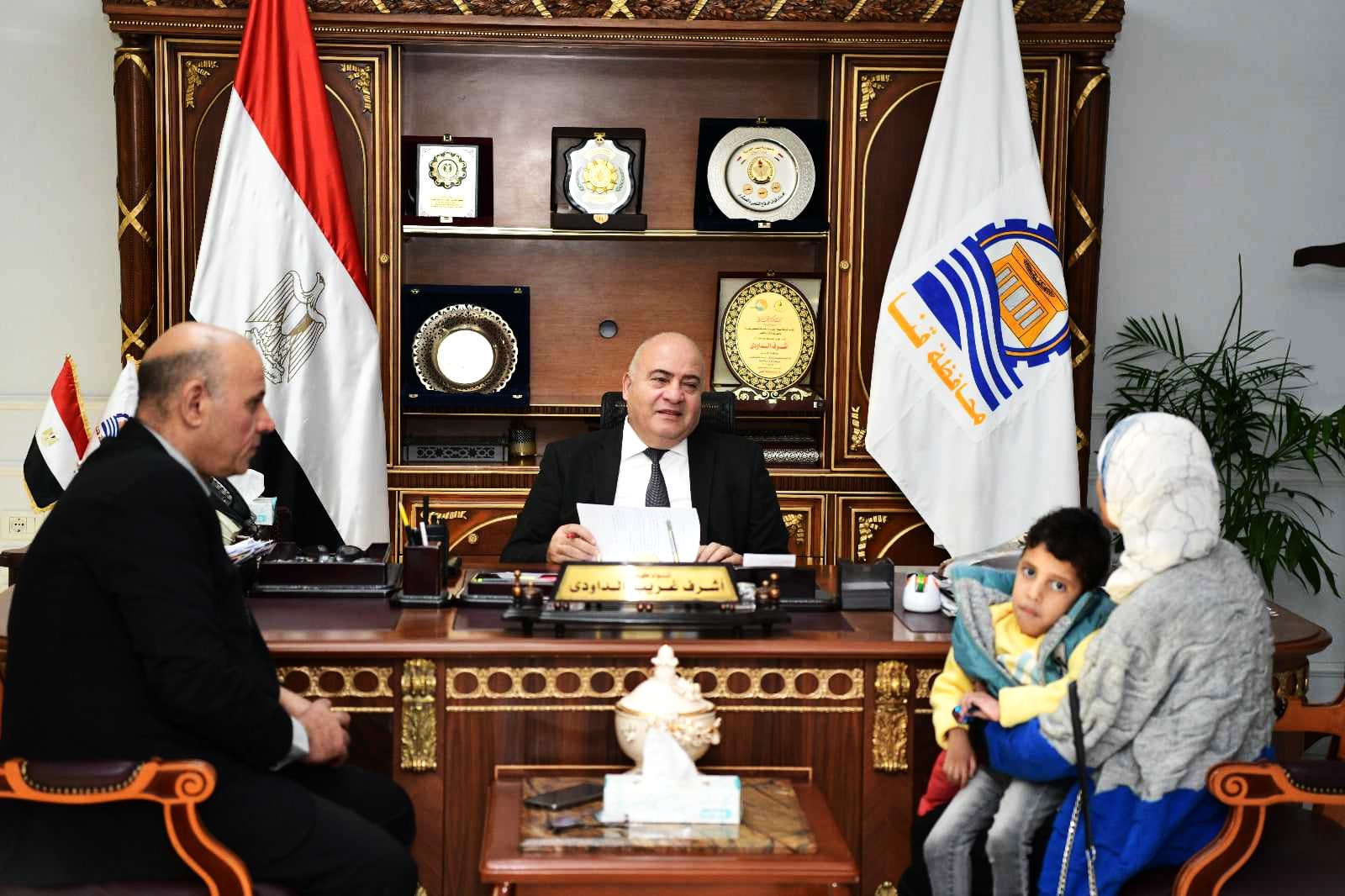إستقبل اللواء أشرف الداودي محافظ قنا، ونائبه الدكتور حازم عمر، وحسام حمودة السكرتير عام للمحافظة، اليوم الخميس، 81 شاكيًا، من مراكز مختلفة بالمحافظة، بالديوان العام.