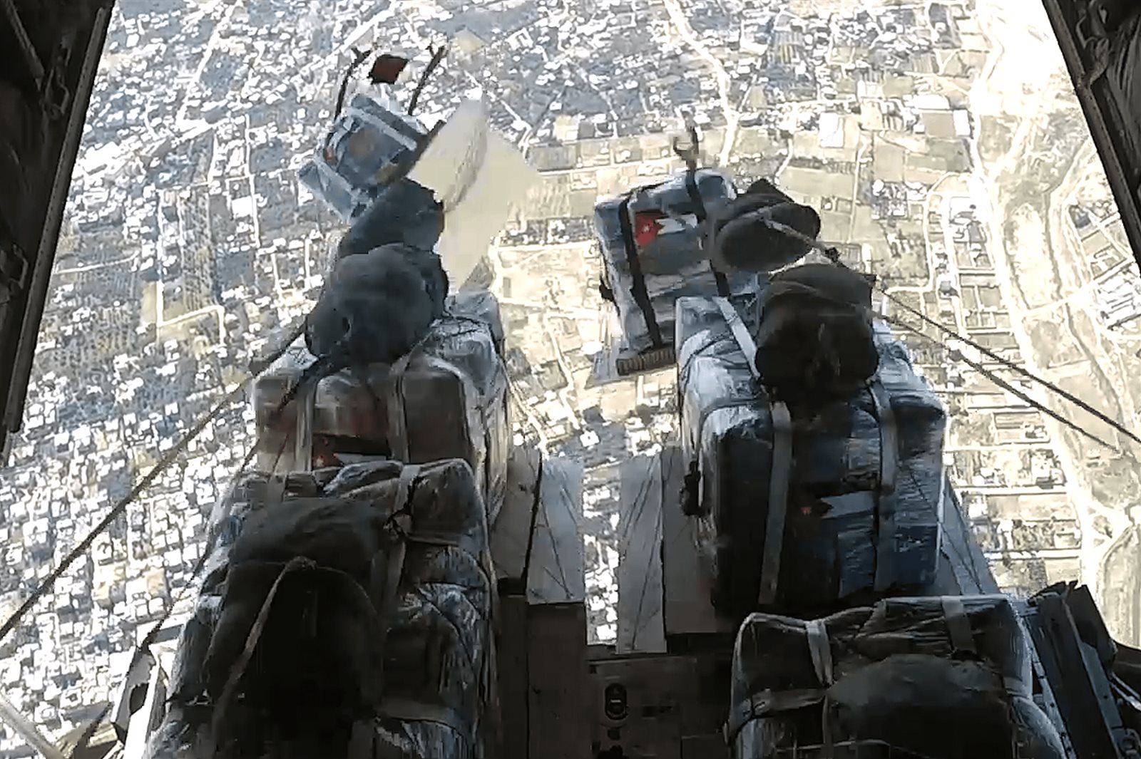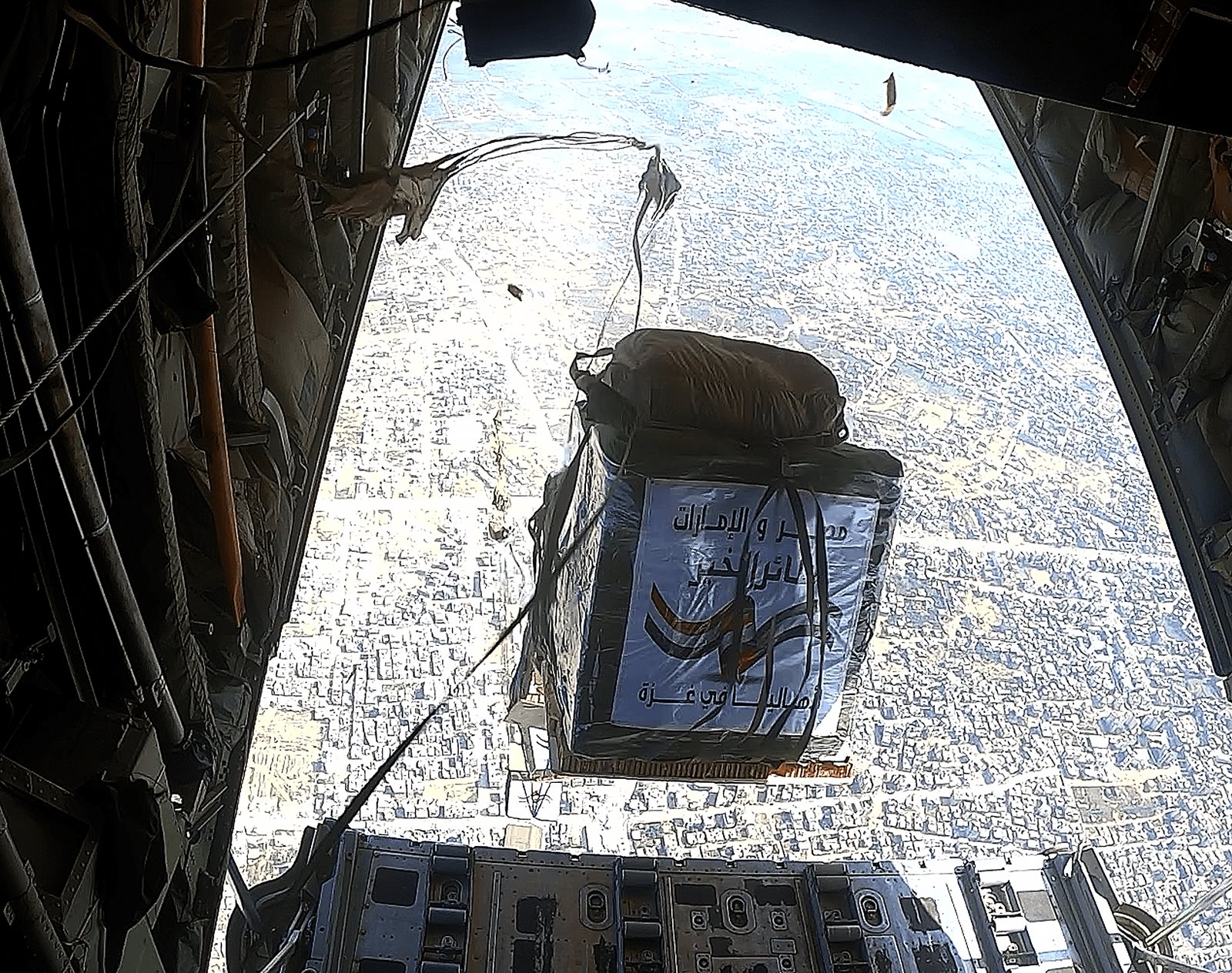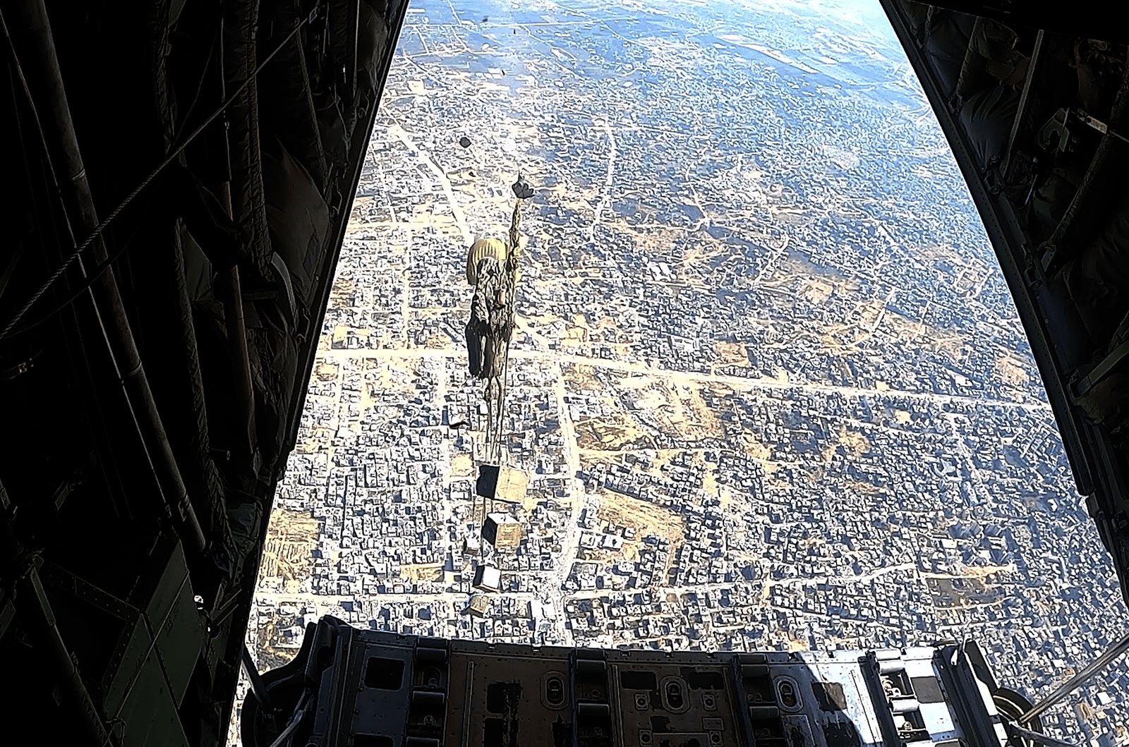 تشارك عناصر من القوات الجوية المصرية في التحالف الدولي لإسقاط المساعدات على غزة من المملكة الأردنية الهاشمية , وذلك بالتعاون مع نظيراتها من القوات الجوية الأردنية والأمريكية والفرنسية والهولندية والبلجيكية لتنفيذ أعمال الإسقاط الجوى لأطنان من المساعدات الإنسانية والإغاثية العاجلة بالمناطق المتضررة بشمال قطاع غزة .