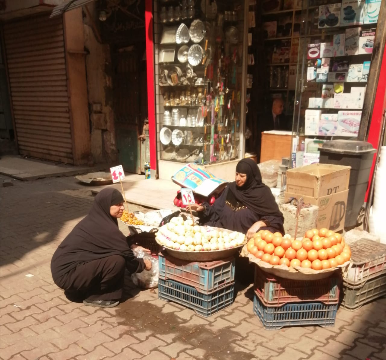 وأضافت: "من سبع سنوات قررت أخرج لسوق البلد جوعت أنا وعيالى وما بقاش قدامنا حل، خاصة بعد ما حماتى بنت منزل جديد وانتقلت إليه، أجرت أرضية فى السوق وفرشت هدوم البالة، ووجدت ستات القرية يقترضن من البنك للمشروعات الصغيرة، روحت معاهم وجبت قرض، ونزلت بضاعة «بلاستيك ـ مقشات ـ مساحات ـ زعفات ـ أدوات مطبخ ـ أدوات صحية للحمام ـ فوط ـ دوسات»، وربنا فتح عليا وكل شهر أنزل بضاعة جديدة".