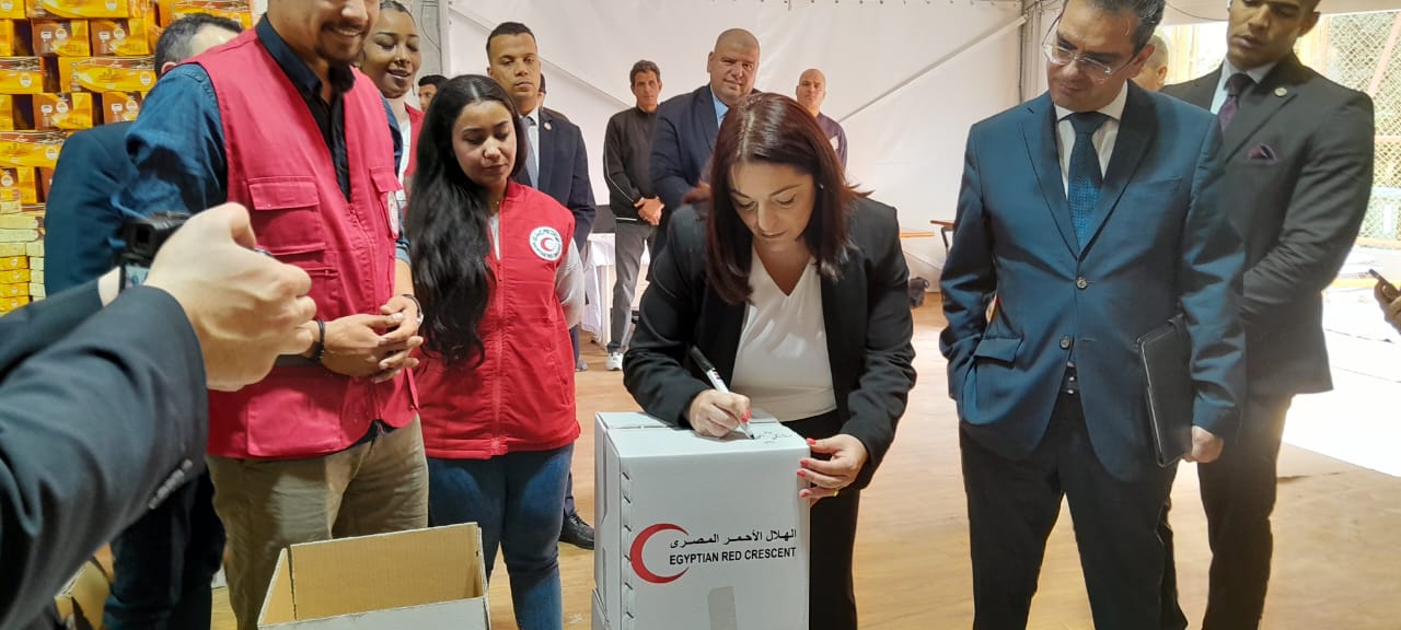 وزيرة بدولة مالطا تطلع على جهود الهلال الأحمر المصري في عمليات الإغاثة