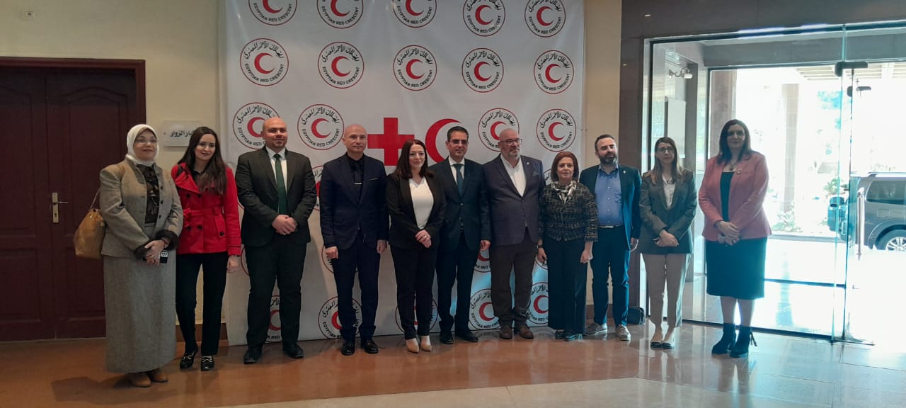 وكان في استقبالهم الدكتور رامي الناظر المدير التنفيذي للهلال الأحمر المصري، والدكتورة آمال إمام المدير الوطني للشباب والتطوع بالهلال الأحمر المصري.